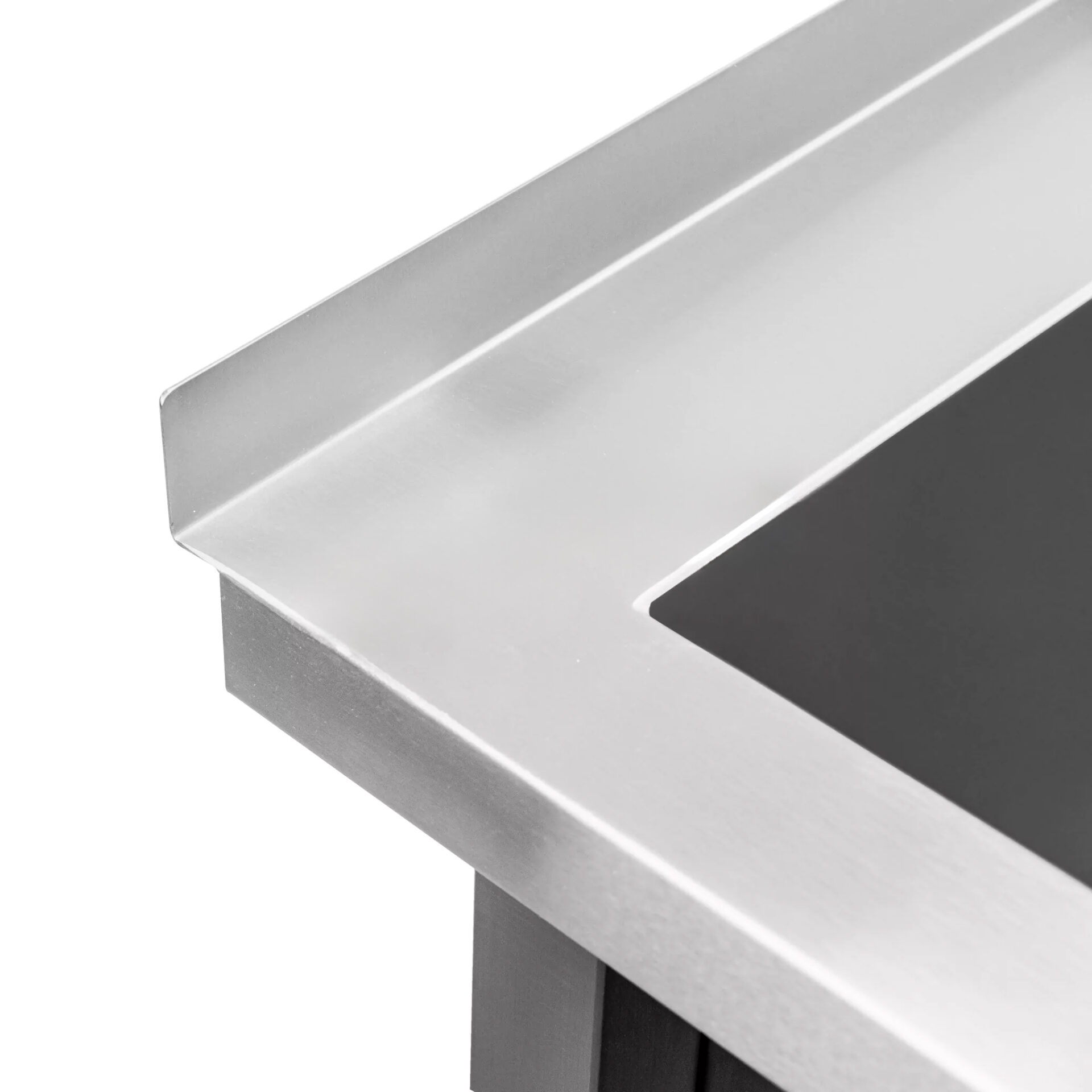 Głęboki basen gastronomiczny został wykonany z wysokiej jakości stali nierdzewnej odpornej na wszelkiego rodzaju uszkodzenia mechaniczne oraz korozję. Dodatkowym plusem mebla do mycia naczyń jest rant, który zapewnia ochronę przed dostaniem się wody oraz zabrudzeń pomiędzy ścianą a stołem. Basen ze stali nierdzewnej jednokomorowy gwarantuje komfort i bezpieczeństwo pracy.