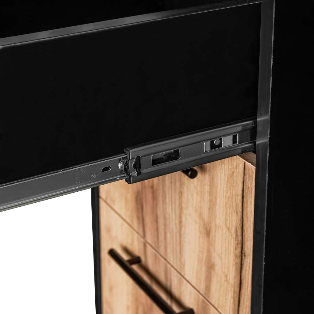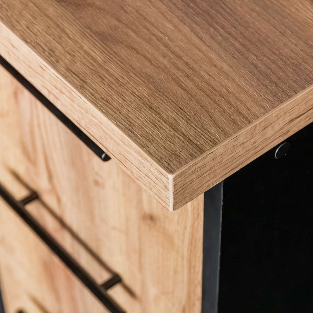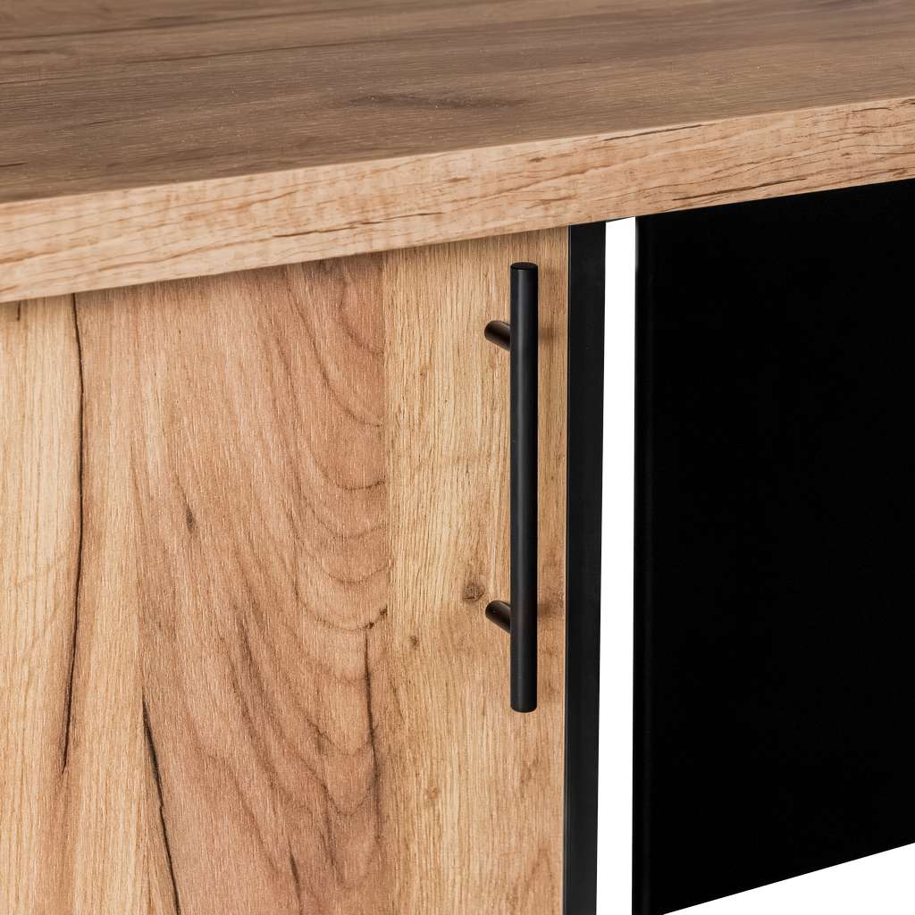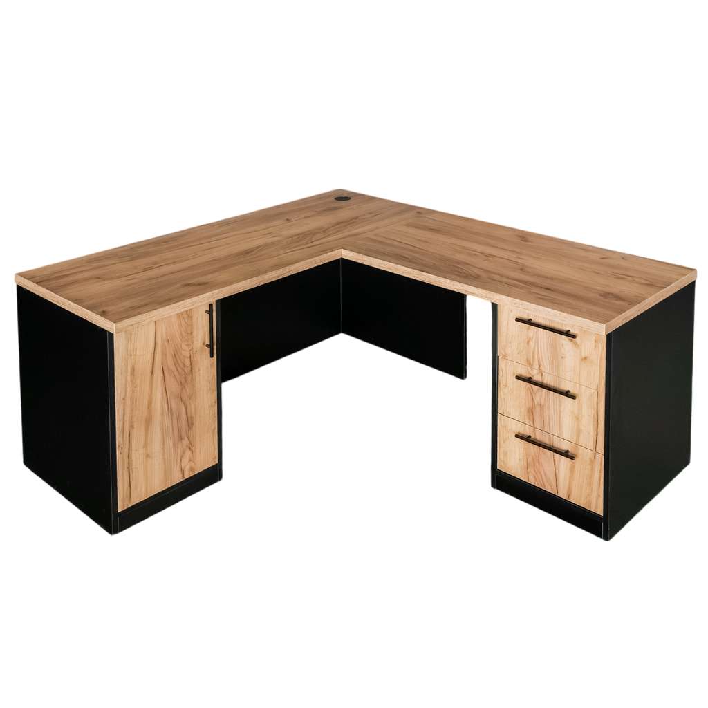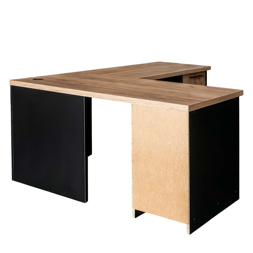 Biurko narożne przyścienne z szafką i szufladami Mega-M H- 76 cm L- 160 cm G- 60 cm dąb kraft / czarny N