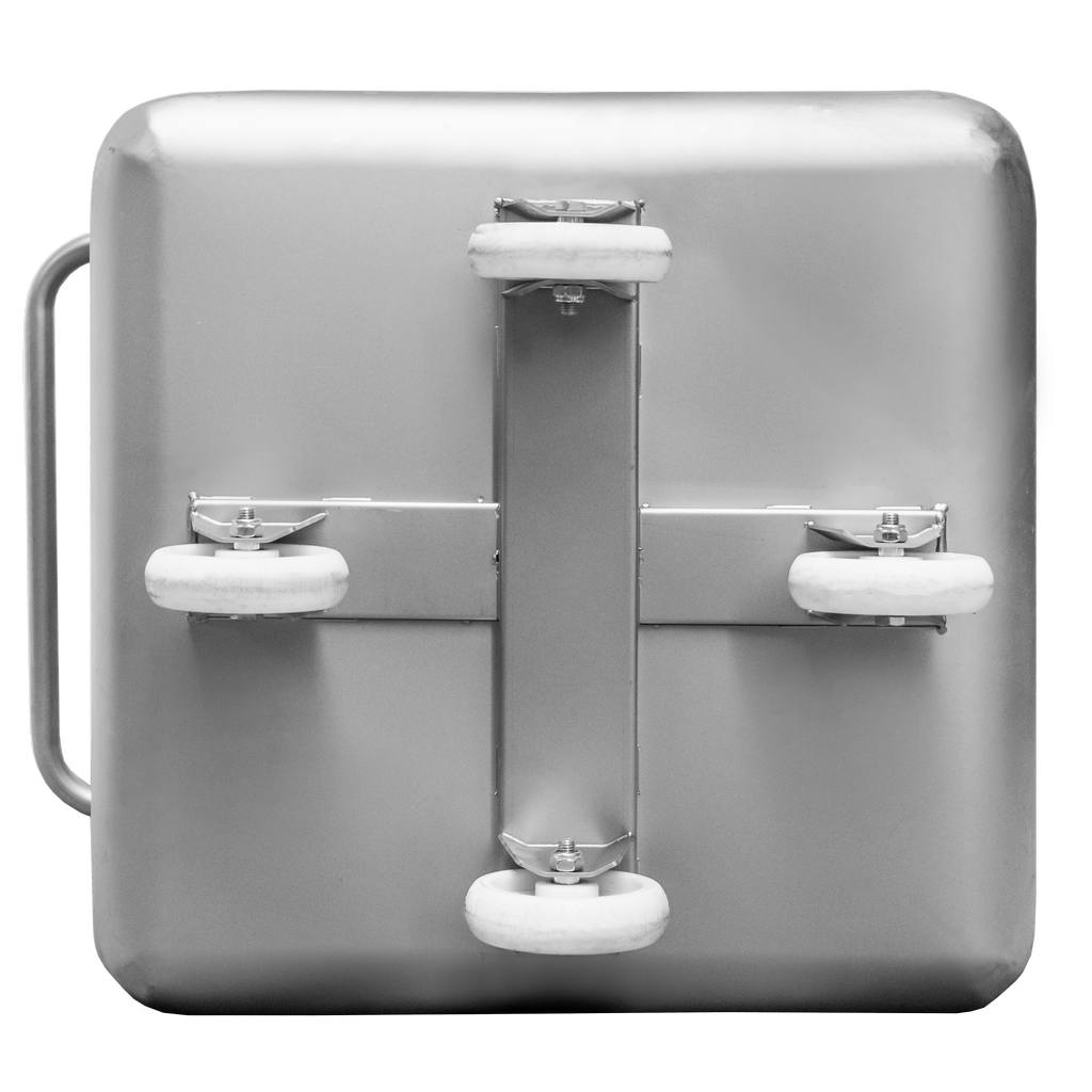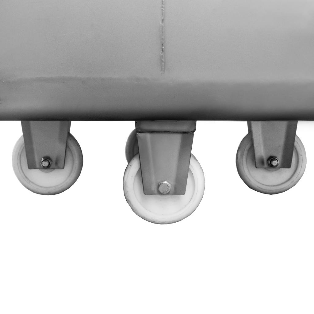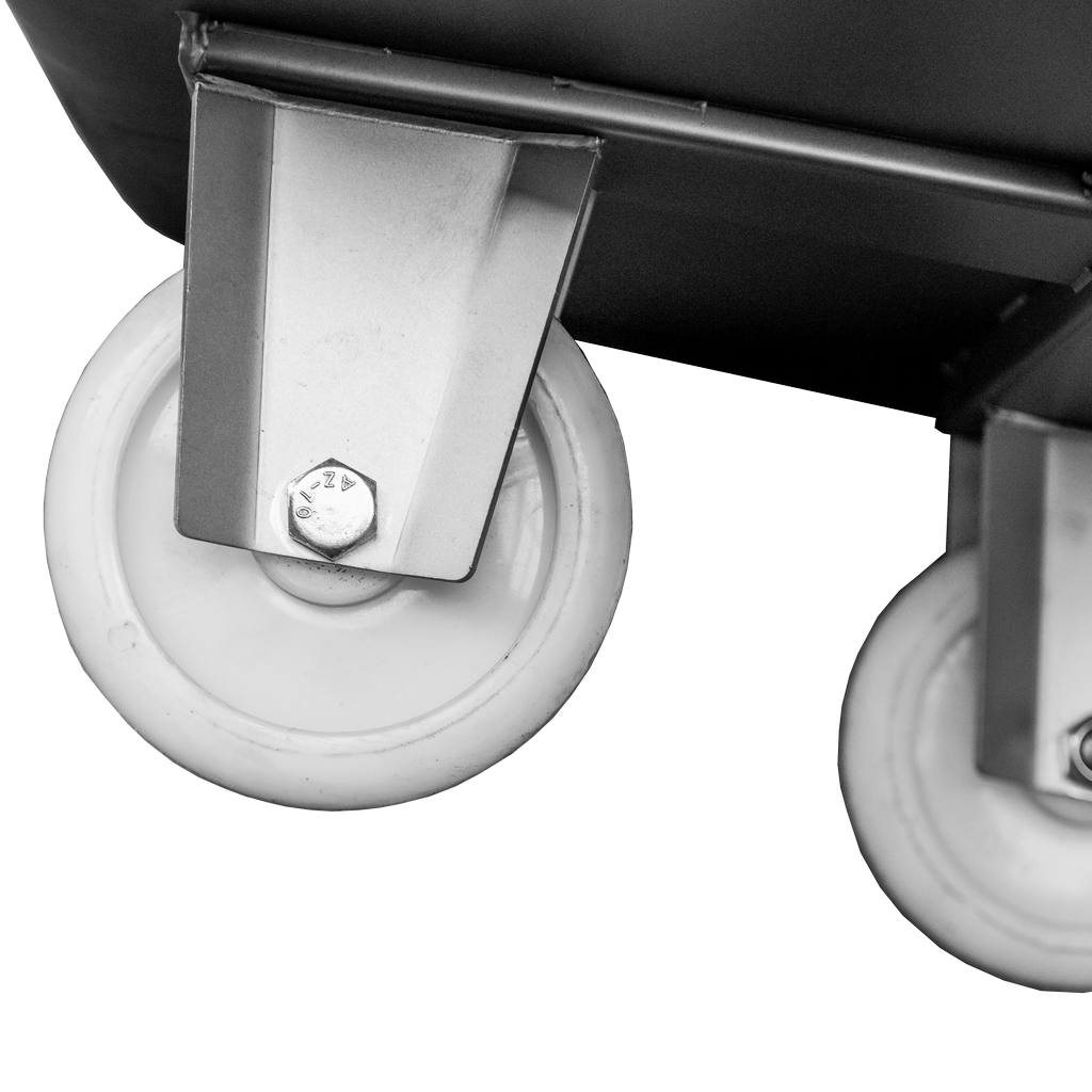 - Cztery kółka poliamidowe z przechyłem odporne na uszkodzenia mechaniczne i ścieranie.