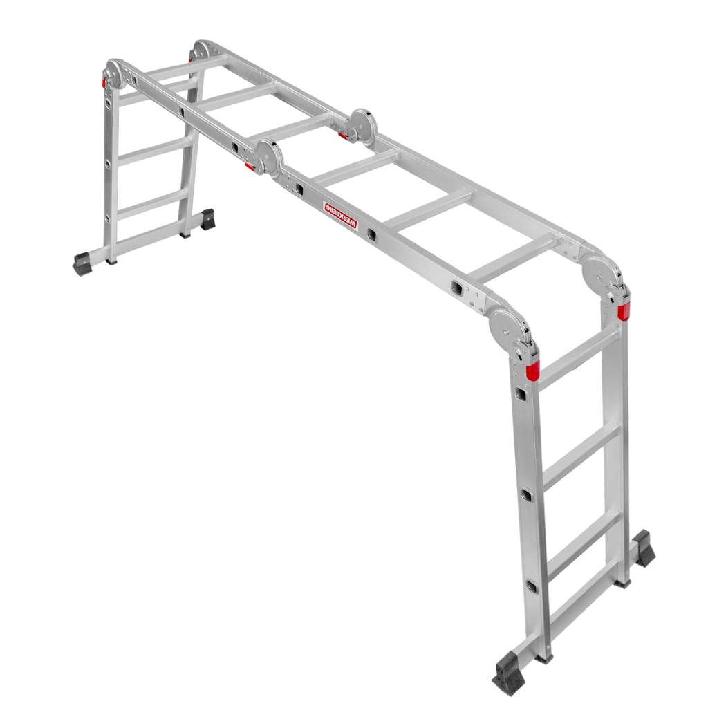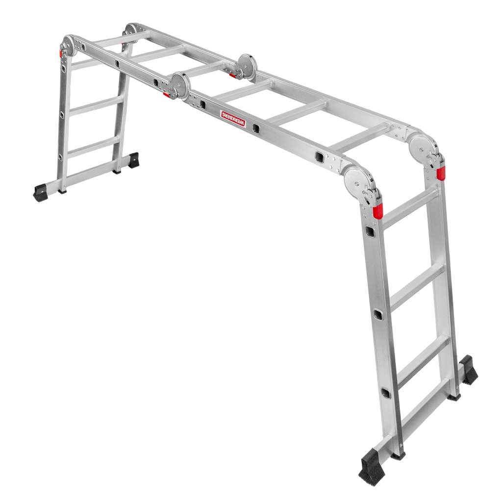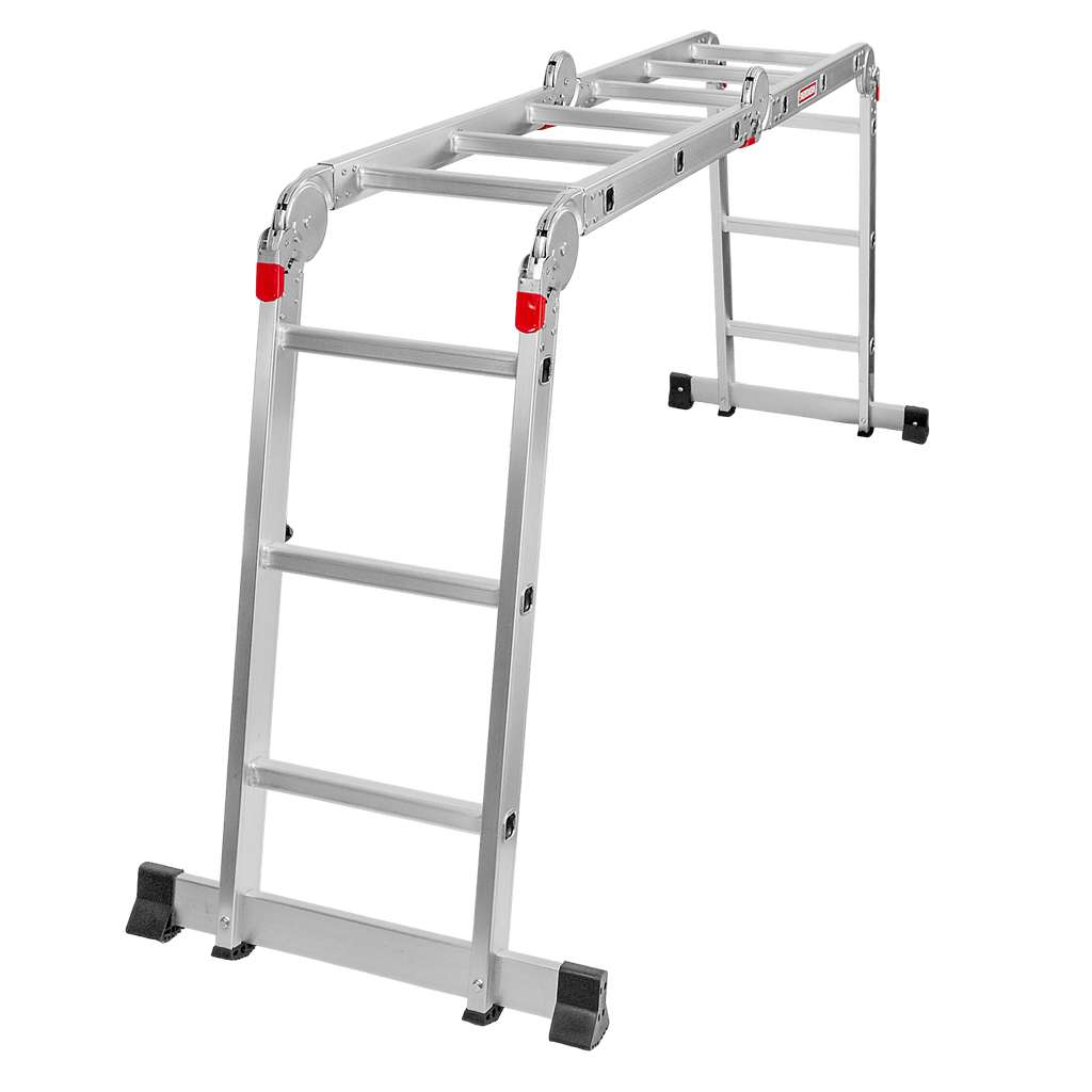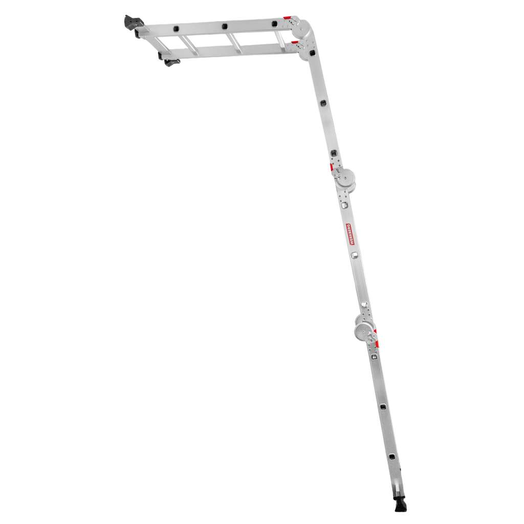 Dzięki przemyślanej budowie i solidnym przegubom blokującym drabinę można w prosty sposób modyfikować, dostosowując ją do różnych zadań i wysokości roboczych – od klasycznej drabiny wolnostojącej, przez drabinę przystawną, aż po niskie rusztowanie. Po złożeniu zajmuje minimalną ilość miejsca, co ułatwia jej przechowywanie w warsztacie i garażu oraz umożliwia wygodny transport samochodowy.