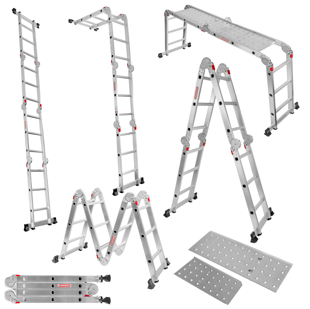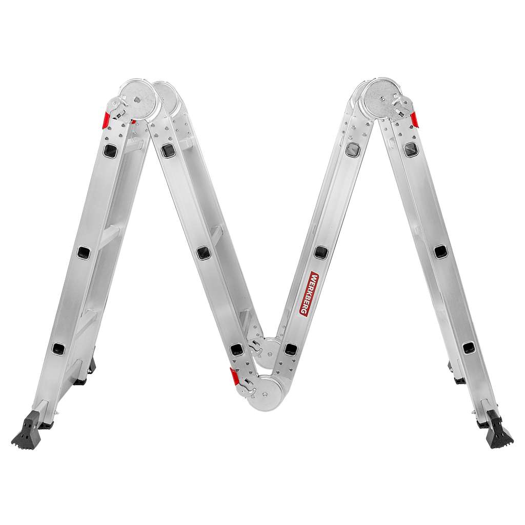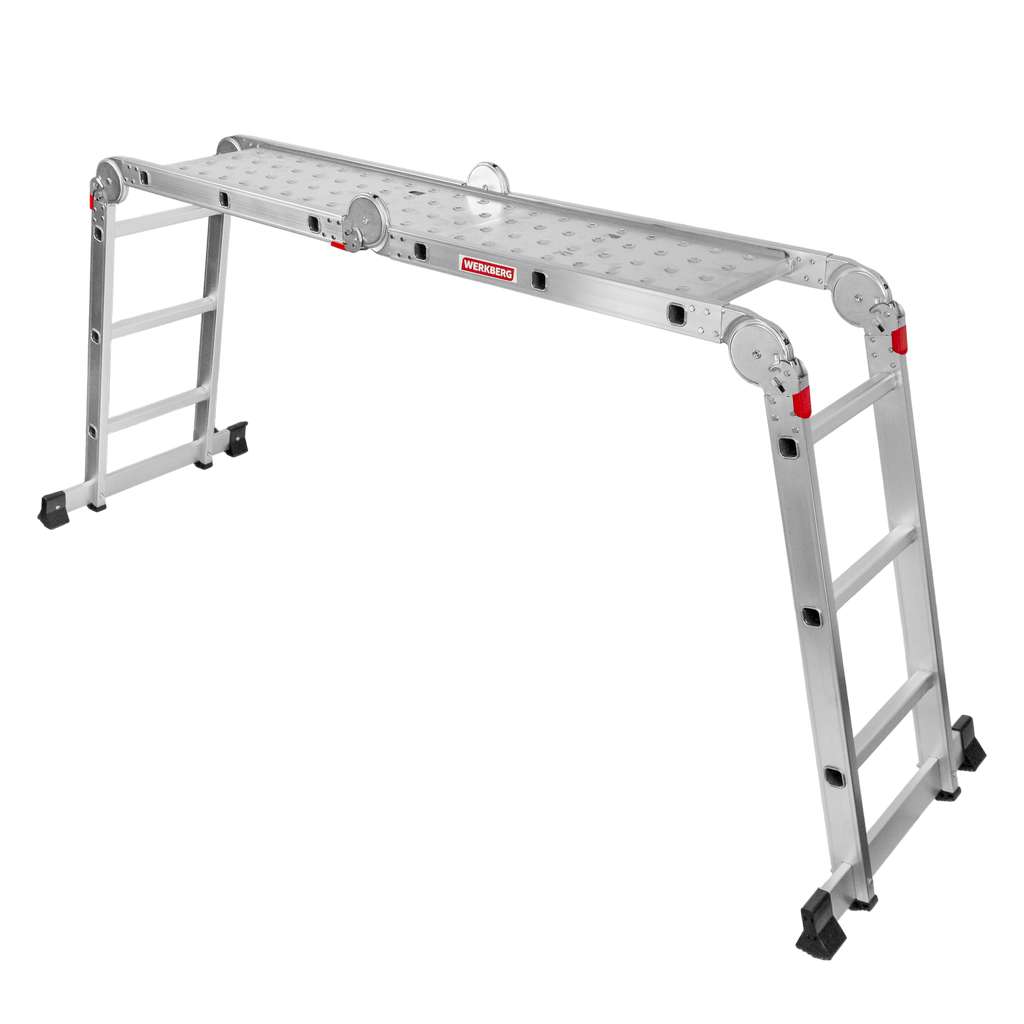 Drabina aluminiowa składana przegubowa WERKBERG 4×3 z podestem roboczym – jedna drabina, wiele zastosowań