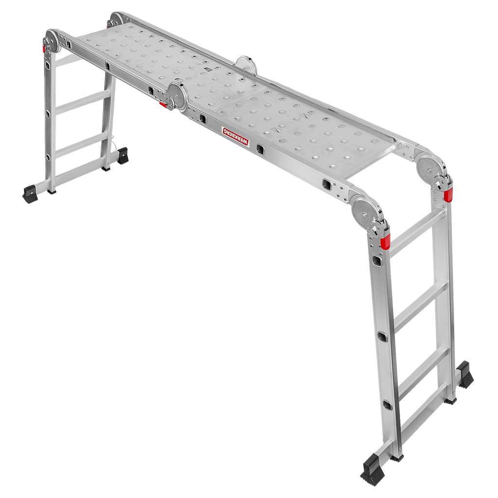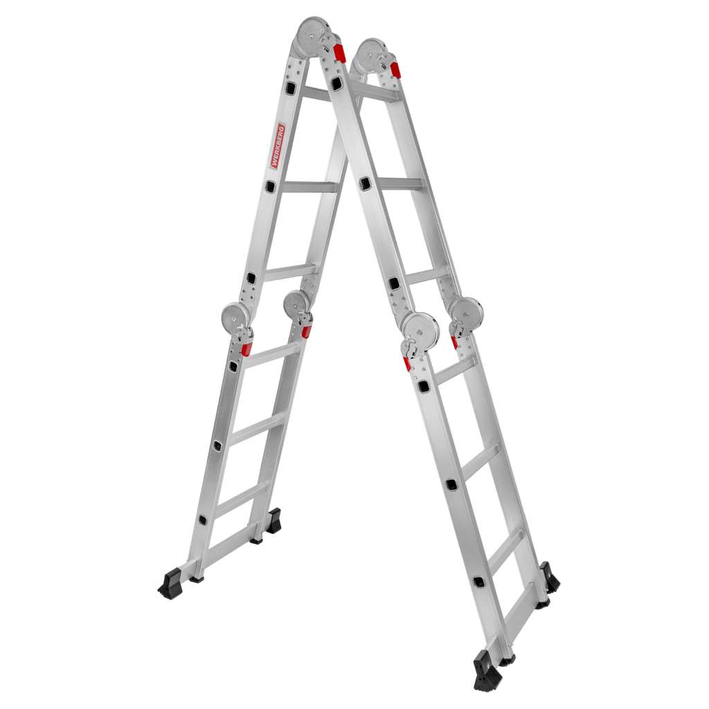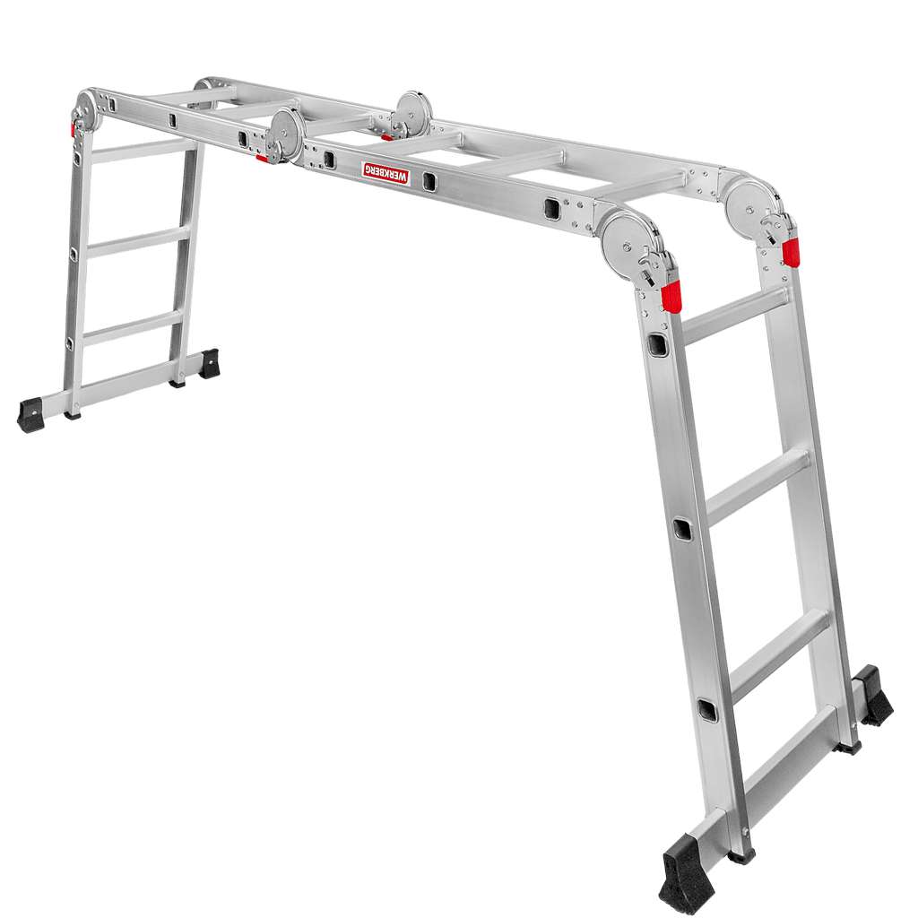 Drabina aluminiowa składana przegubowa WERKBERG 4×3 z podestem roboczym – jedna drabina, wiele zastosowań