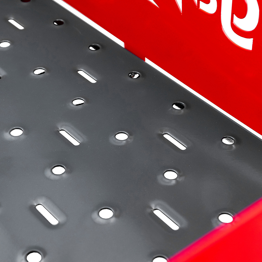 Drabina platformowa 4-stopniowa Mega-M zapewnia bezpieczną pracę na dużych wysokościach oraz wygodę użytkowania. Umożliwia pobieranie i układanie wyrobów na regałach oraz prace wykończeniowe w sposób bezpieczny. Poręcze zapewniają łatwe wchodzenie i schodzenie. Szeroka platforma gwarantuje wygodną podporę przez wiele godzin.
