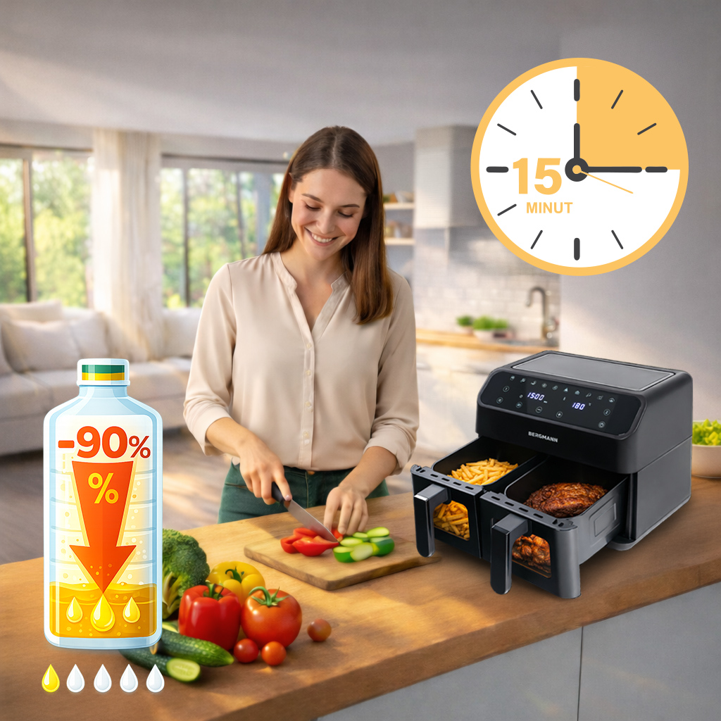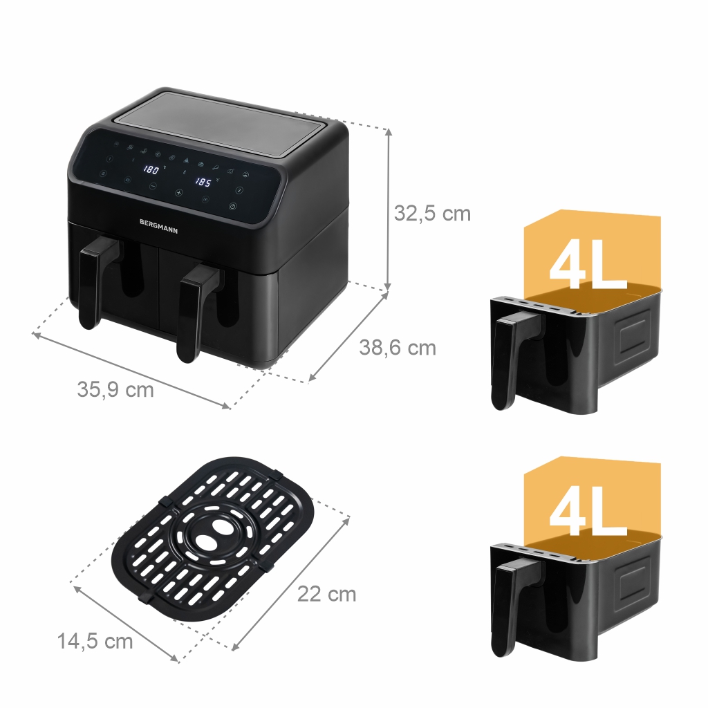 Frytkownica beztłuszczowa Air Fryer BERGMANN YA dwa kosze 2x4L – podwójna radość smaków