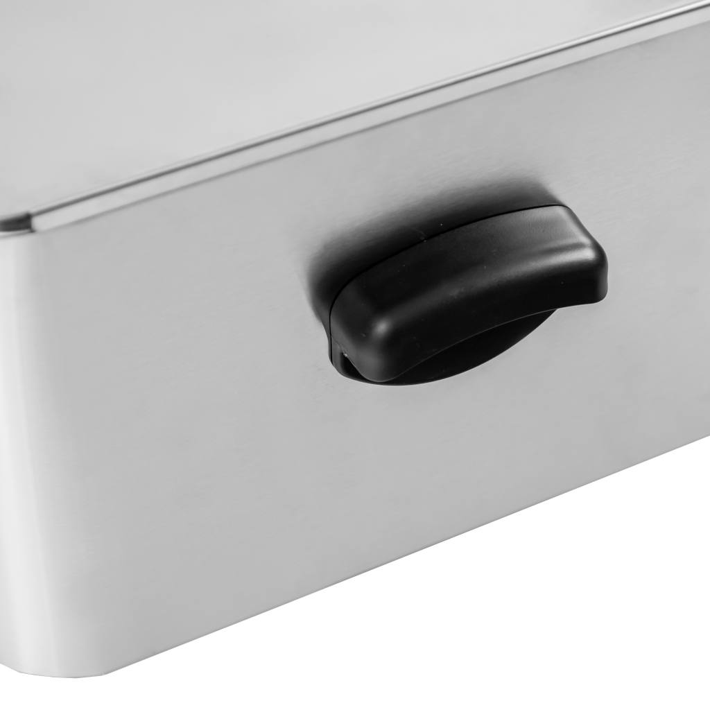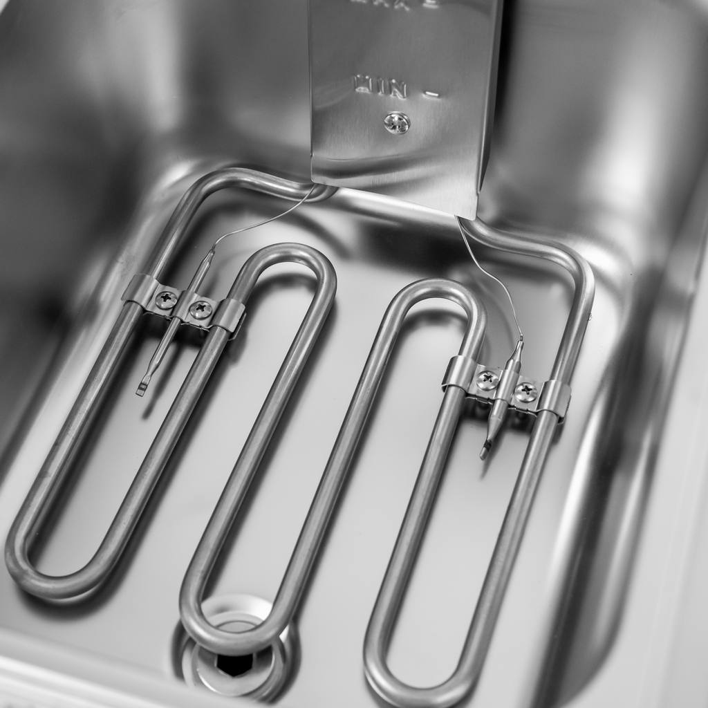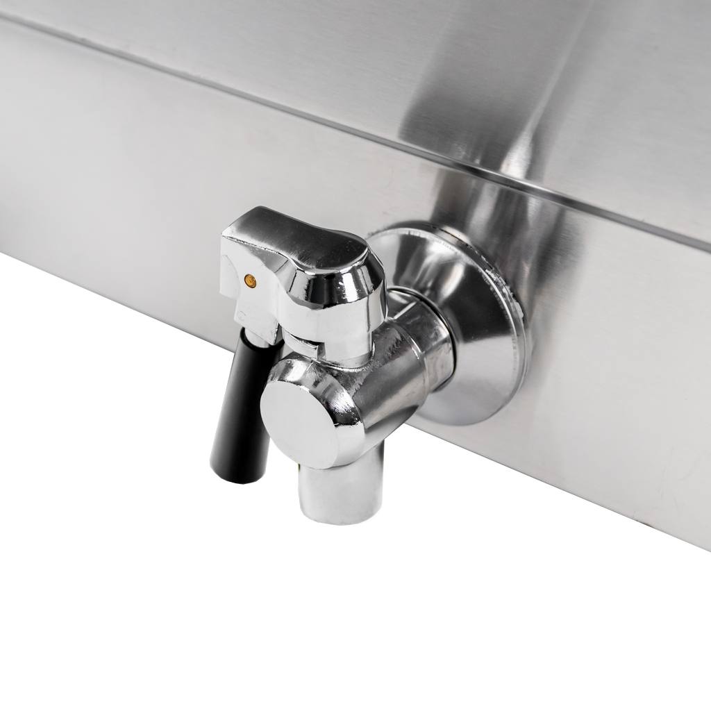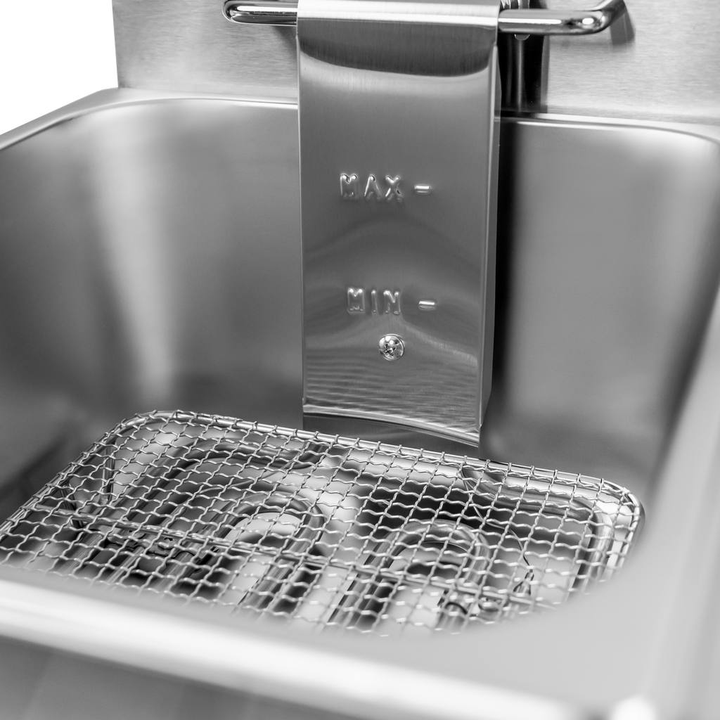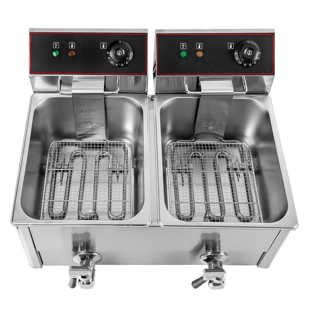 Dwukomorowa frytkownica o pojemności 2x6L. Doskonale sprawdzi się do smażenia mięs, frytek, a nawet różnego rodzaju warzyw. Frytkownice marki Mega-M to gwarancja bezawaryjności. Solidna konstrukcja zapewni długi okres użytkowania. Zdejmowany element grzewczy umożliwia staranne wyczyszczenie zbiorników na olej. Komory oraz obudowa zostały wykonane z odpornej na wysoką temperaturę oraz uszkodzenia mechaniczne stali nierdzewnej. Urządzenie nie wchodzi w reakcje z przygotowywaną żywnością. Dwukomorowa frytkownica znajdzie zastosowanie w domach weselnych, restauracjach oraz barach szybkiej obsługi.