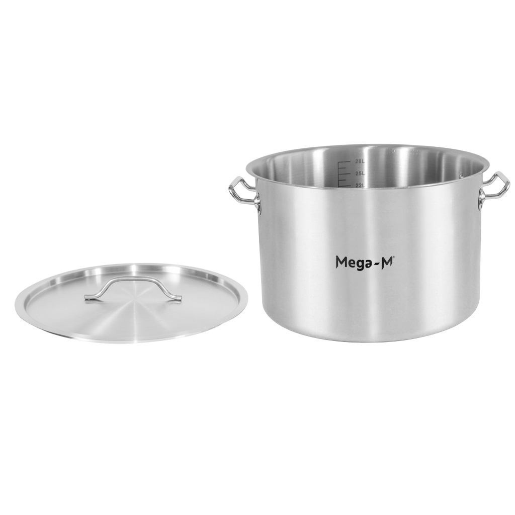Garnek ze stali nierdzewnej średni z pokrywką Mega-M STANDARD 32L – komfort gotowania na każdej kuchence