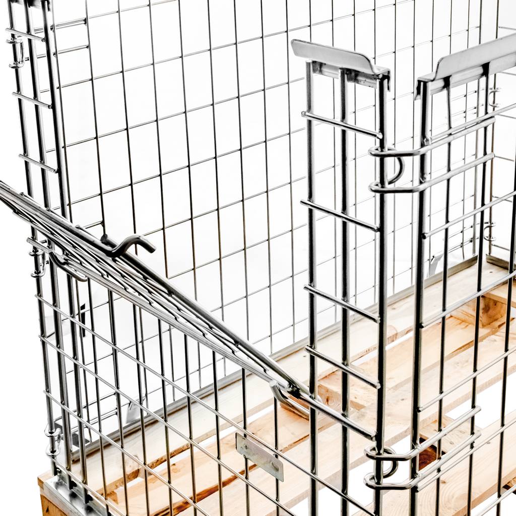 Gitterboxy Mega-M to pojemniki stalowe ze składaną klapą na krótszym boku. Dzięki zastosowaniu otwieranego okna jest możliwość wkładania i wyjmowania towaru w dowolnym momencie, idealne do składowania i transportu drobnego towaru. Nadstawki paletowe wykonane są z drutu ocynkowanego (średnica 4 mm), odporne na zmiany temperatury i wilgotności. Kosze druciane są wykorzystywane w różnych gałęziach handlu oraz przemysłu. Świetnie nadają się do utrzymania porządku, transportu drobnych produktów, przewożenia ciężkich przedmiotów oraz wyeksponowania towaru w centrach handlowych. Kosze siatkowe metalowe mogą pomieścić nawet 800 kg ładunku.