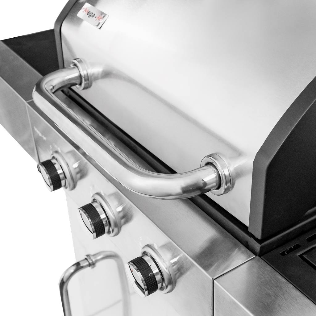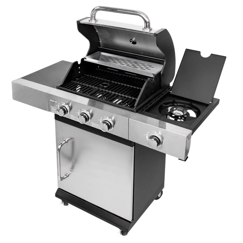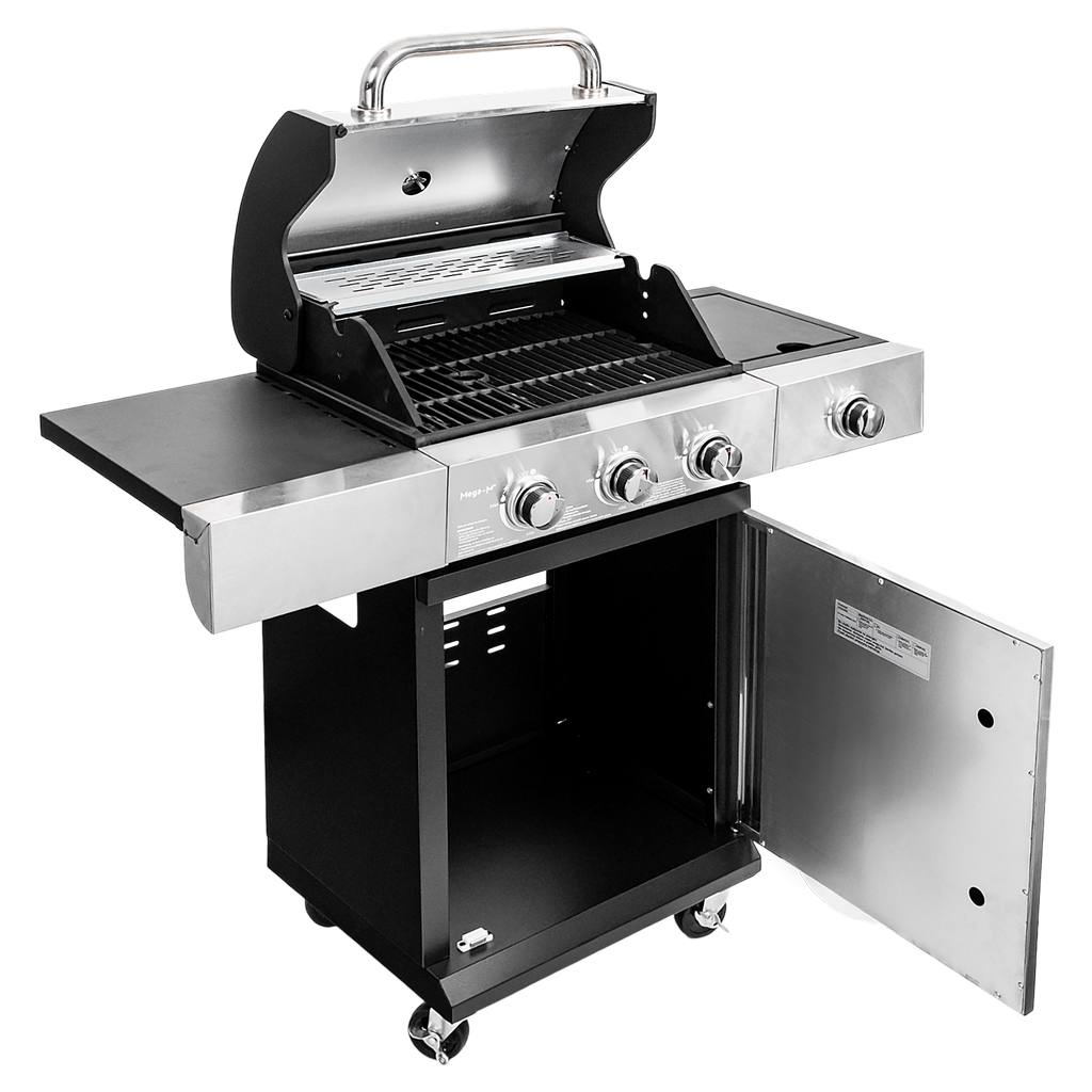 Grill gazowy ogrodowy Mega-M 3+1 ze stolikiem bocznym,pokrywą oraz drzwiami ze stali nierdzewnej N