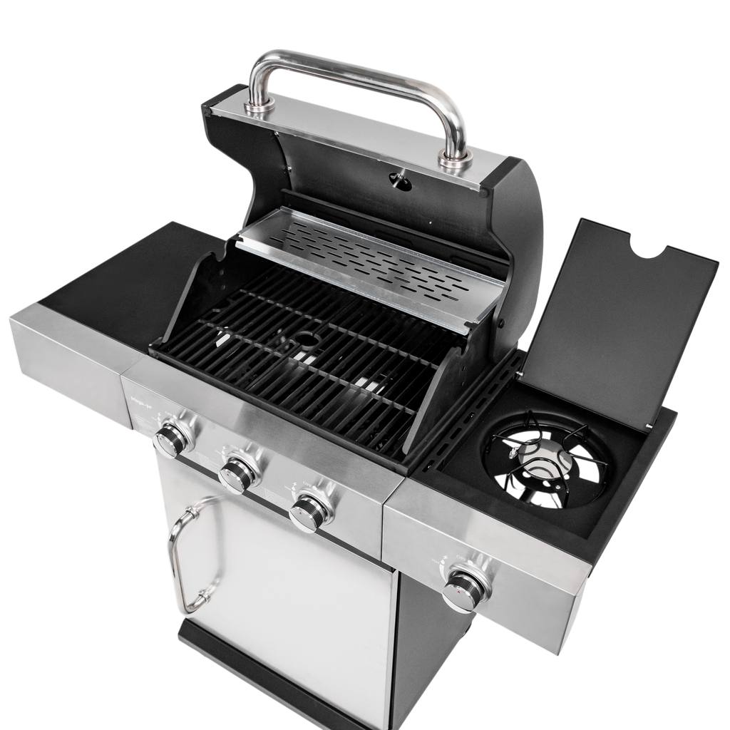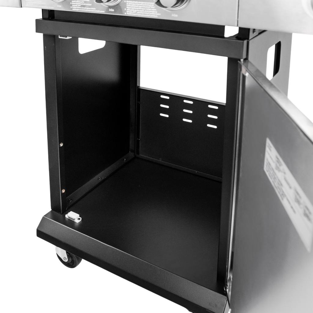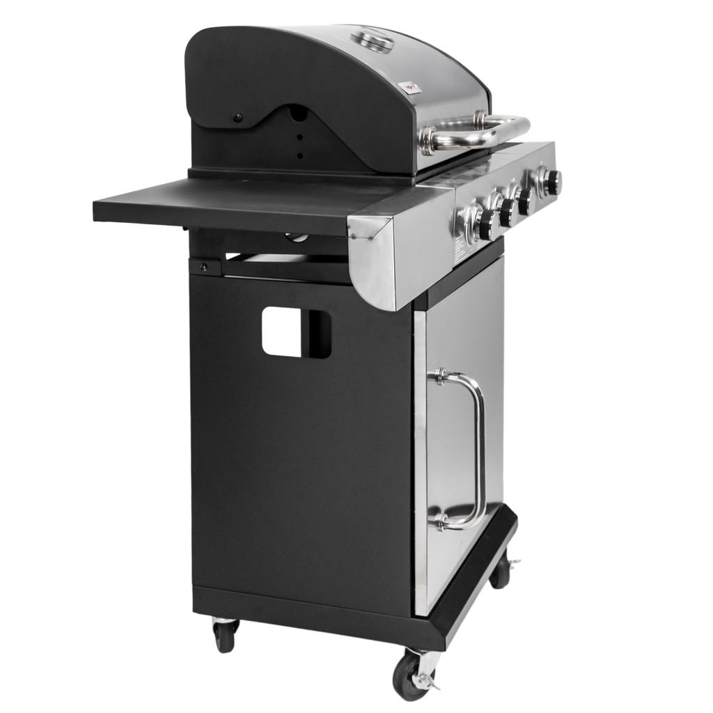 Grill gazowy ogrodowy Mega-M 3+1 ze stolikiem bocznym,pokrywą oraz drzwiami ze stali nierdzewnej N