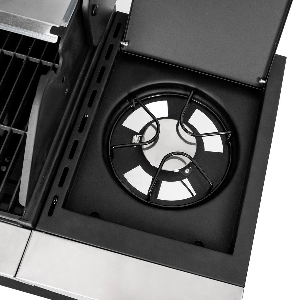 Grill ogrodowy gazowy Mega-M 3+1 z bocznym stolikiem – niezawodny grill do ogrodu i gastronomii