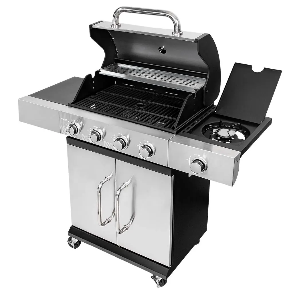 Grill gazowy ogrodowy Mega-M 4+1 ze stolikiem bocznym,pokrywą oraz drzwiami ze stali nierdzewnej N