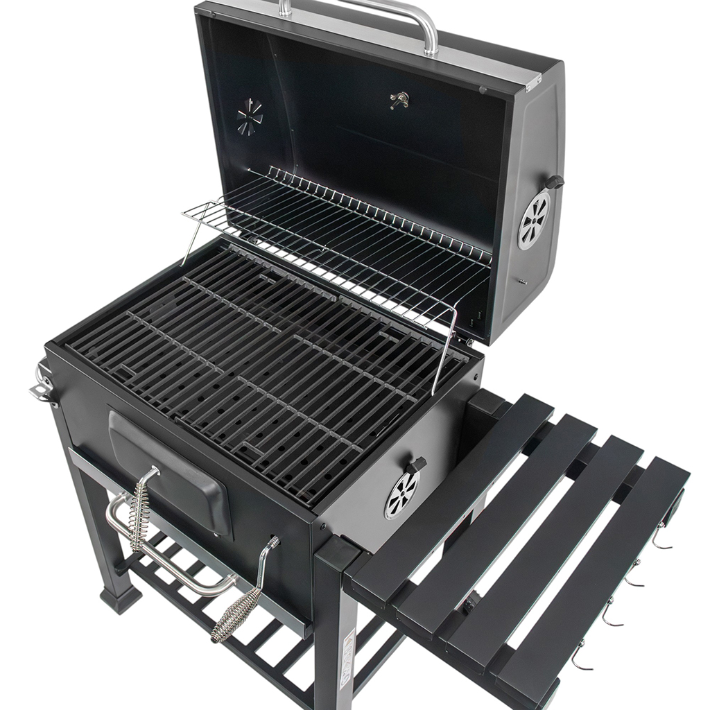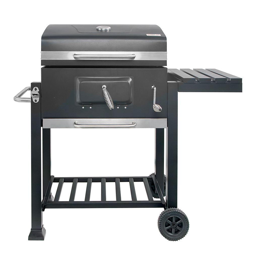 Grill ogrodowy węglowy Mega-M czarny z pokrywą 1x stolik boczny 55×42 N