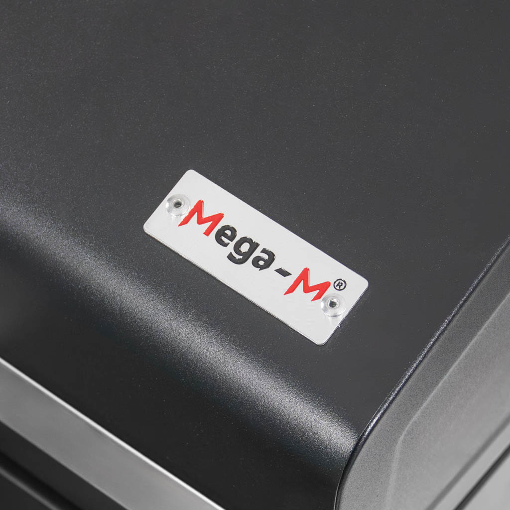 Grill węglowy Mega-M zaprojektowany został z myślą o wymagających użytkownikach, zapewnia komfortowe grillowanie i sprawiają, że każdy posiłek z grilla staje się przyjemnością. Łączy solidność wykonania z przemyślanymi rozwiązaniami. Misa paleniskowa grilla wykonana jest ze stali malowanej, odpornej na działanie wysokiej temperatury. Wózek węglowy wyposażony jest w podwójny żeliwny ruszt do grillowania oraz wygodny chromowany ruszt do podgrzewania potraw. Mobilna konstrukcja oraz praktyczna, składana półka boczna to jego dodatkowe zalety.