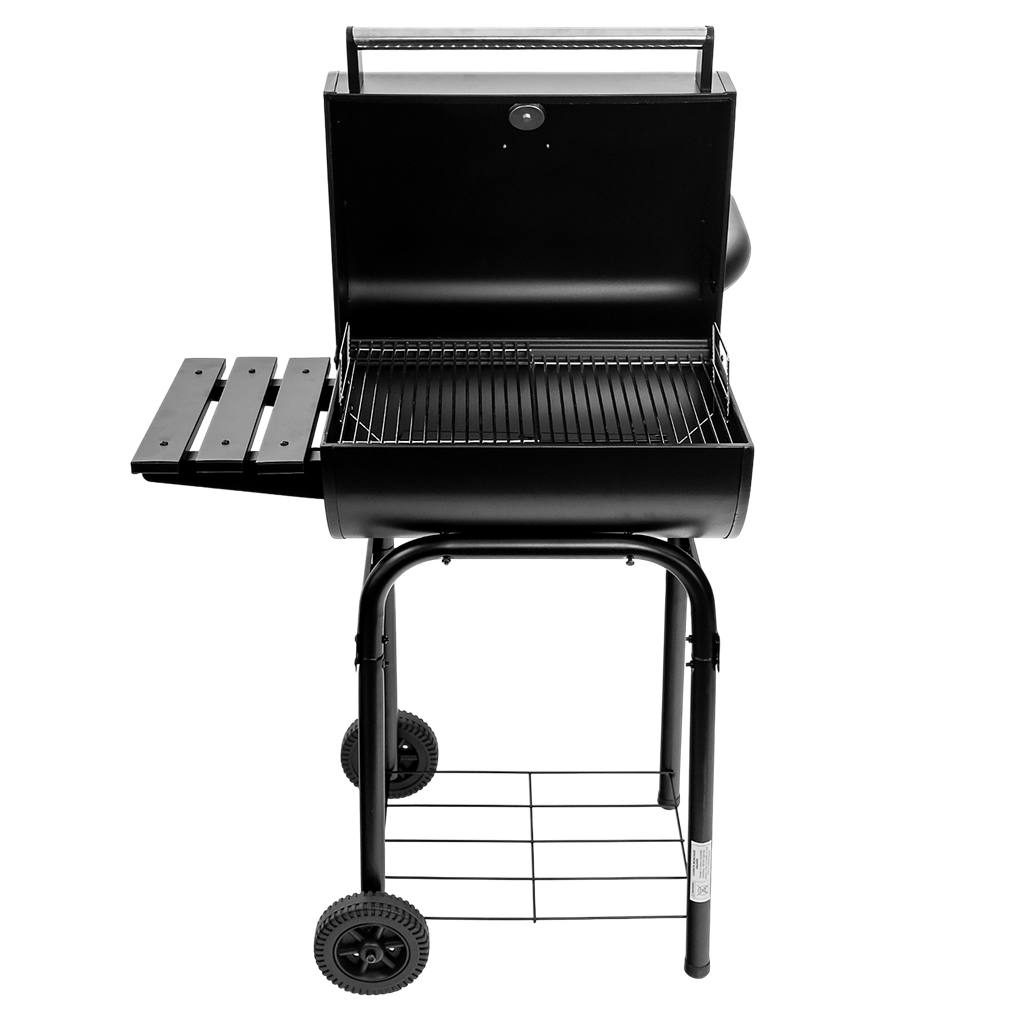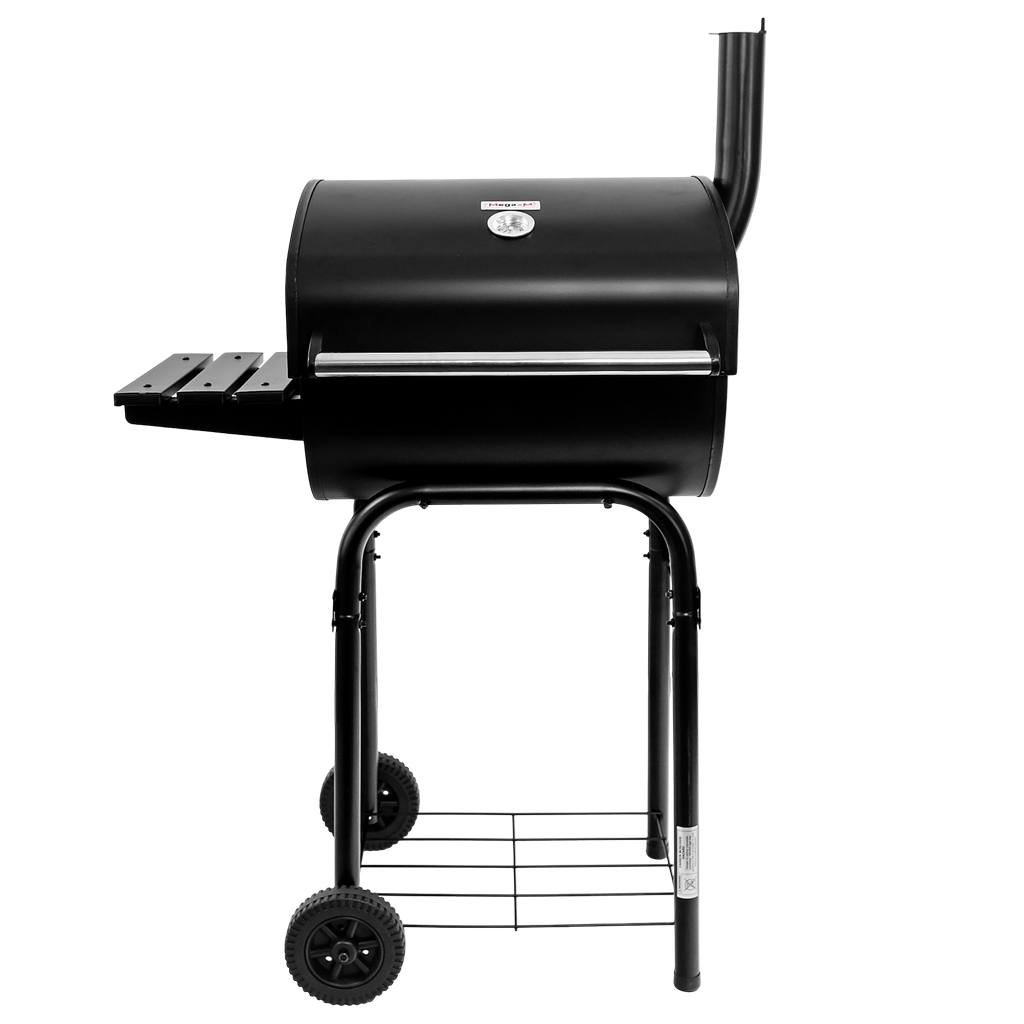 Grill węglowy Mega-M to jeden z najbardziej popularnych rodzajów grilla jakie można spotkać w przydomowych ogródkach. Wózki węglowe cechuje przemyślana konstrukcja i wygoda użytkowania. Misa paleniskowa wykonana jest ze stali malowanej odpornej na działanie wysokiej temperatury. Wózek węglowy wyposażone jest w chromowany ruszt do grillowania oraz podgrzewania potraw. Misa posiada otwieraną klapę, dzięki której możliwe jest bezproblemowe uzupełnianie węgla drzewnego. Mobilna i lekka konstrukcja grilla oraz dwie praktyczne półki boczne to jego dodatkowe zalety.