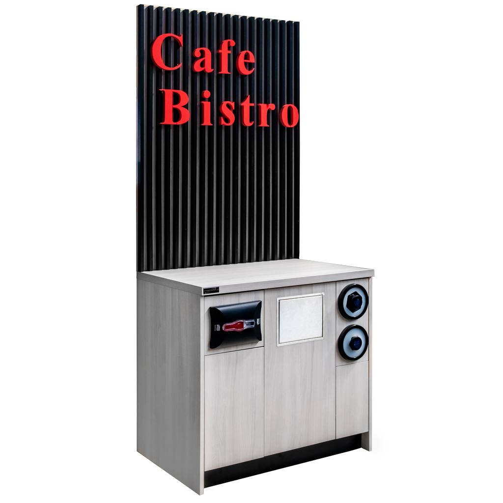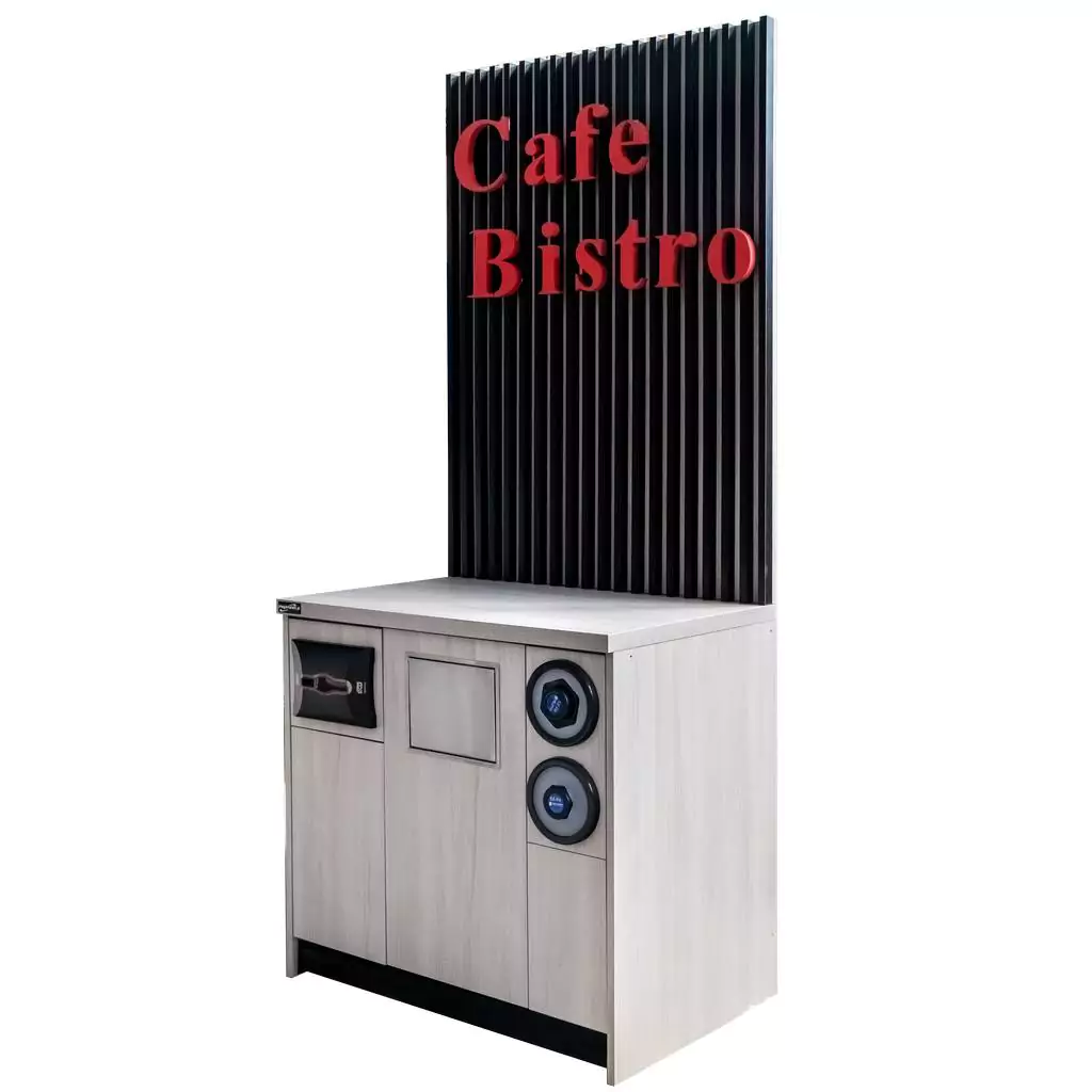 - Dolne szafki umożliwiają przechowywanie kubków, kawy, mleka, serwetek i innych przedmiotów potrzebnych na stanowisku kawowym.