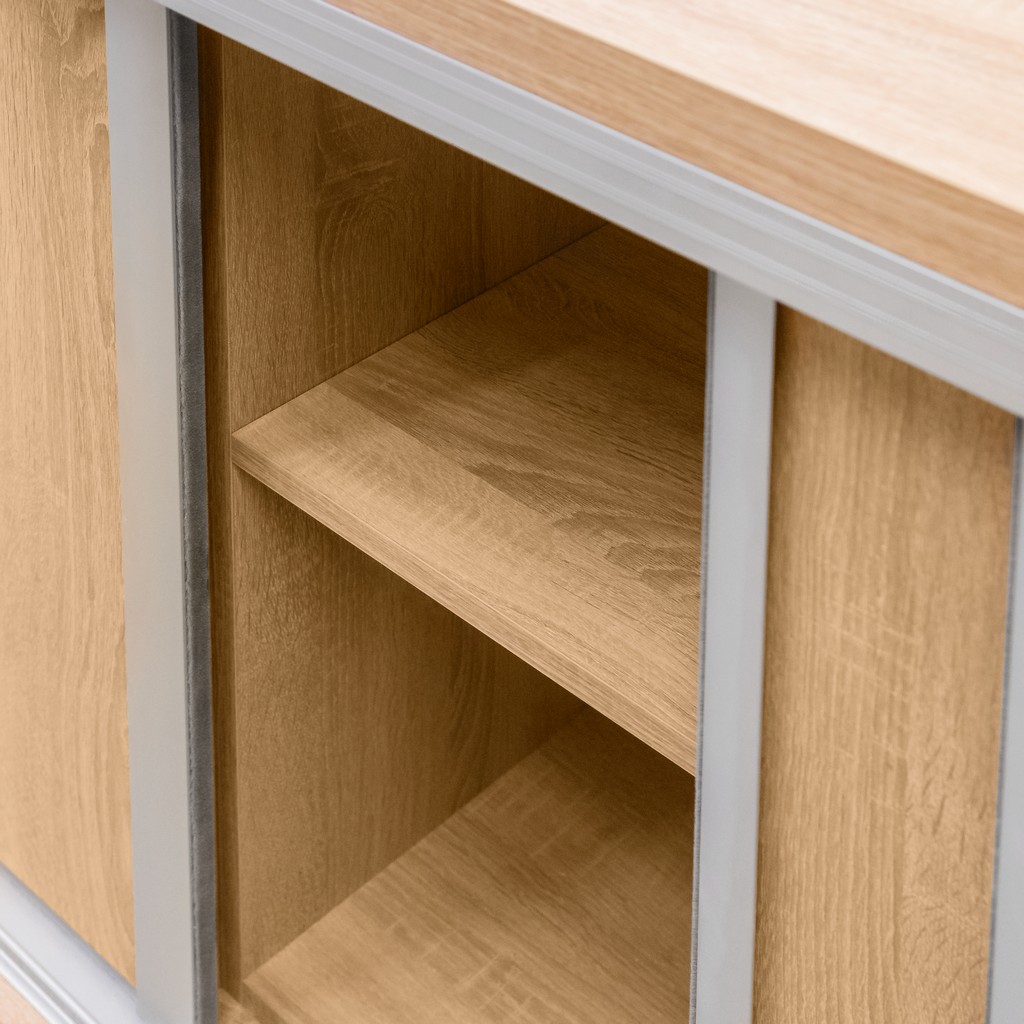 Komoda biurowa z drzwiami przesuwnymi Mega-M H-90 cm L-280 cm G-50 cm dąb sonoma N
