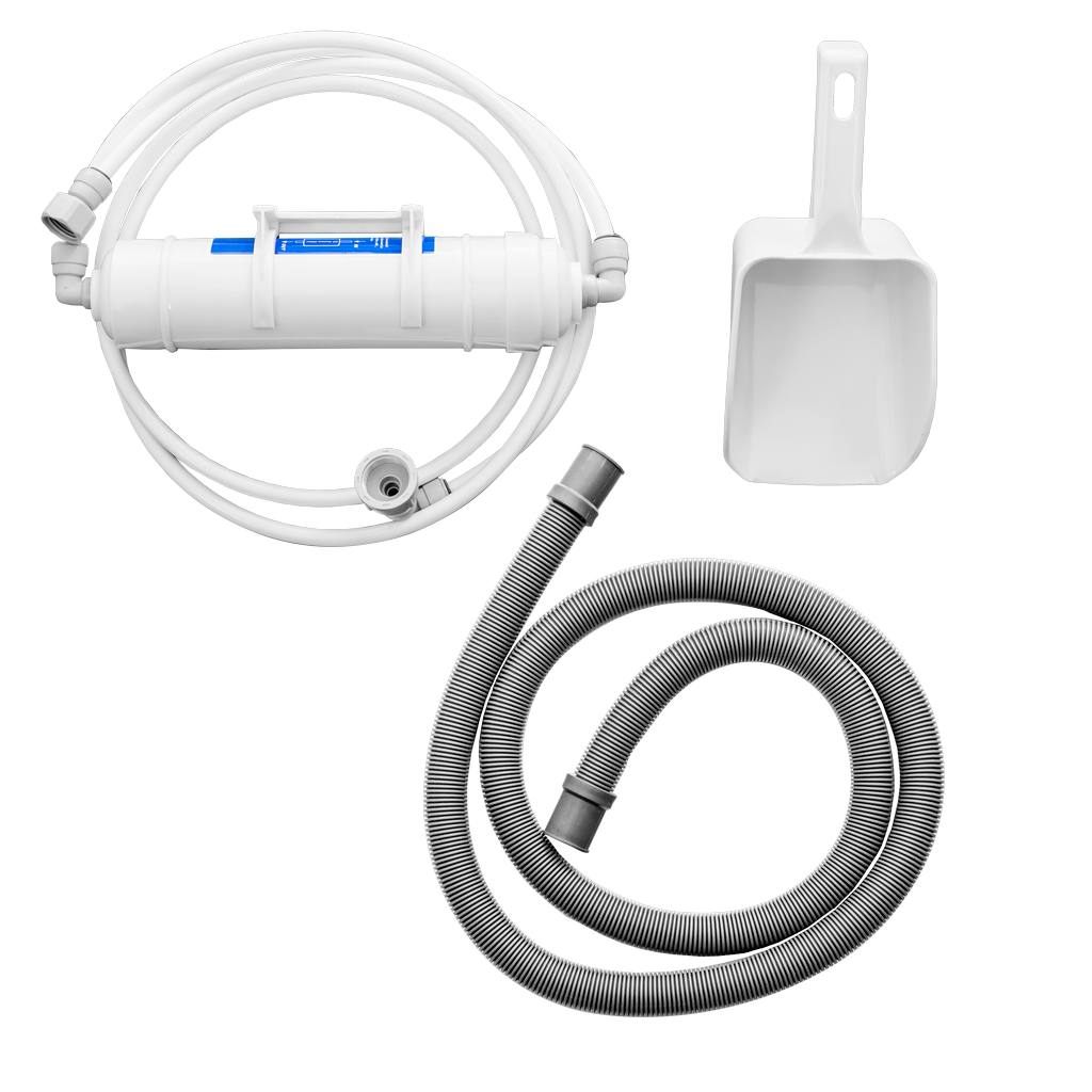 - Filtr wody umożliwia podłączenie kostkarki bezpośrednio do kranu.