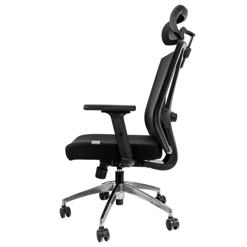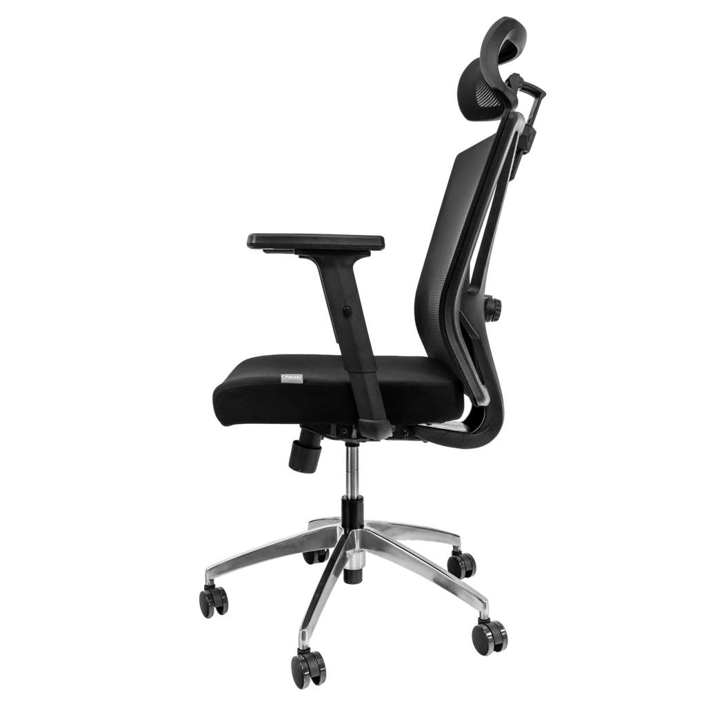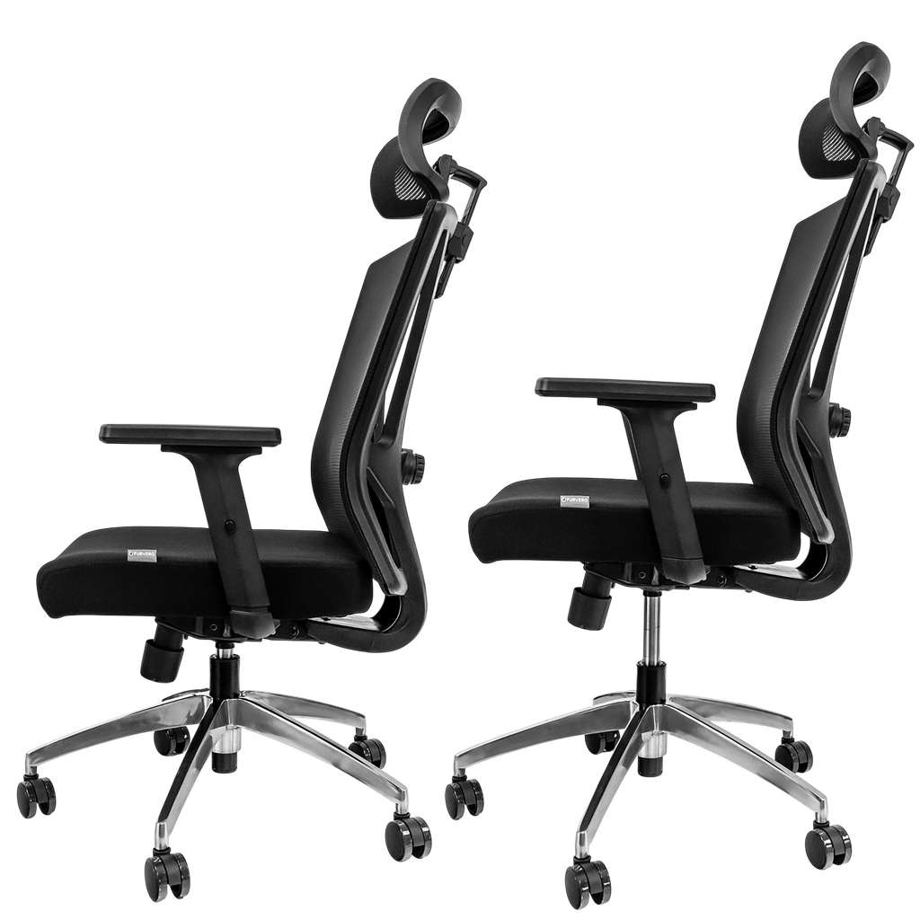 FURVERO Zenith BA/A2D/L2D/H2D/S to fotel biurowy klasy premium, zaprojektowany z myślą o intensywnej pracy przy biurku, która wymaga komfortu, odpowiedniego podparcia i nowoczesnego wyglądu. To idealne połączenie ergonomii, trwałości i elegancji – doskonałe do pracy w biurze, gabinecie czy domowym home office. Ten model wyposażono w aluminiową podstawę, która gwarantuje stabilność i wytrzymałość nawet przy codziennym, wielogodzinnym użytkowaniu. Podłokietniki z regulacją w dwóch płaszczyznach (góra-dół oraz tył-przód) umożliwiają precyzyjne dopasowanie do pozycji ciała. Podparcie lędźwiowe oraz zagłówek z regulacją w dwóch płaszczyznach pozwalają na pełne wsparcie dla kręgosłupa i szyi, niezależnie od sylwetki użytkownika. Z kolei regulacja wysunięcia siedziska to funkcja szczególnie ceniona przez osoby wysokie – umożliwia lepsze podparcie ud i zmniejsza napięcie w kolanach. Całość uzupełnia regulacja wysokości siedziska i możliwość obrotu 360°, które zapewniają mobilność i swobodę ruchu, a gumowane kółka chronią podłogę przed zarysowaniem.