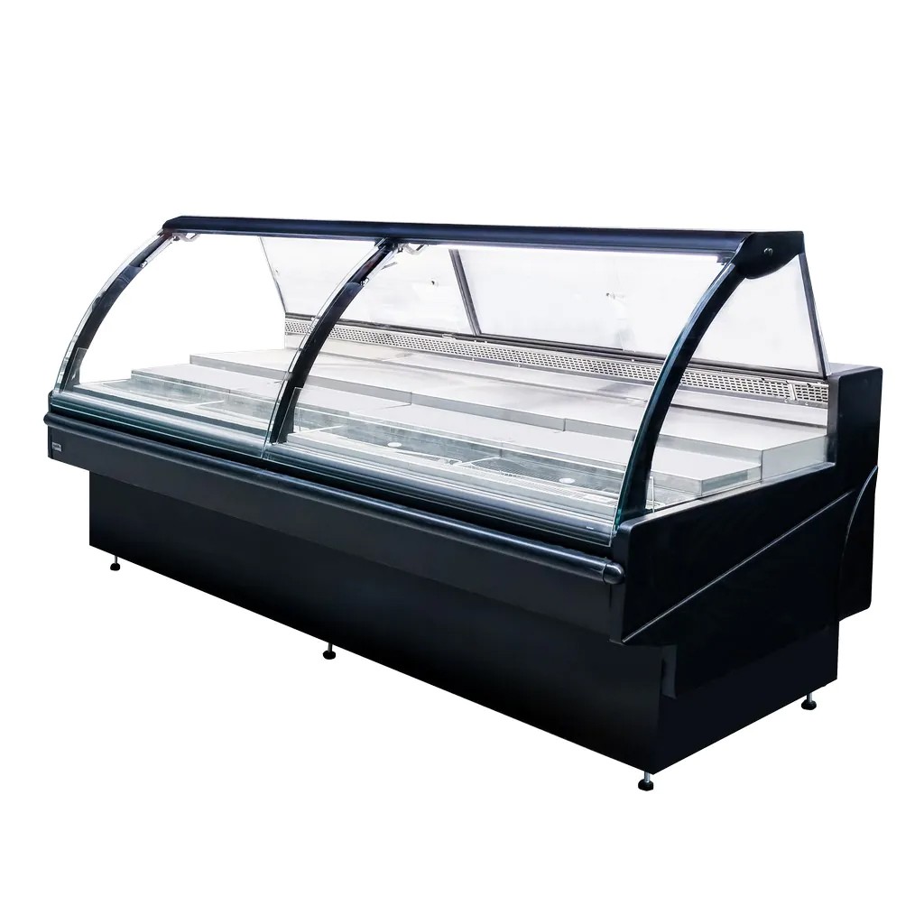 Lada chłodnicza z szybą giętą Mega-M ROSA z agregatem wewnętrznym, to nowoczesne wzornictwo oraz wysoka jakość wykonania. Oświetlenie LED zapewnia doskonałą widoczność produktu. Lada posiada blat roboczy ze stali nierdzewnej, który gwarantuje bezpieczny kontakt z żywnością. Zastosowanie podzespołów renomowanych marek Embraco i Carel gwarantuje wieloletni okres użytkowania. Lada ekspozycyjna służy do przechowywania mięs, wędlin, ryb, serów w optymalnych warunkach chłodniczych.