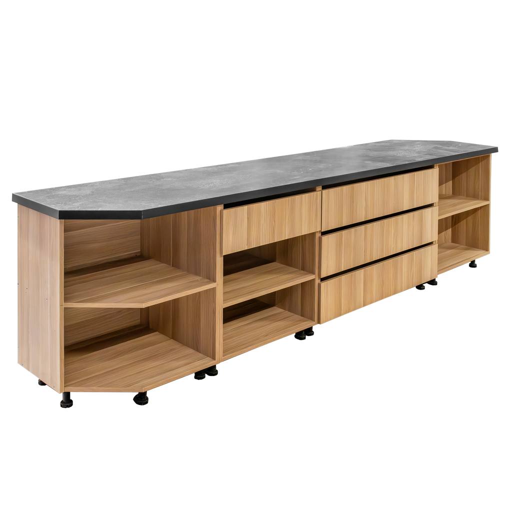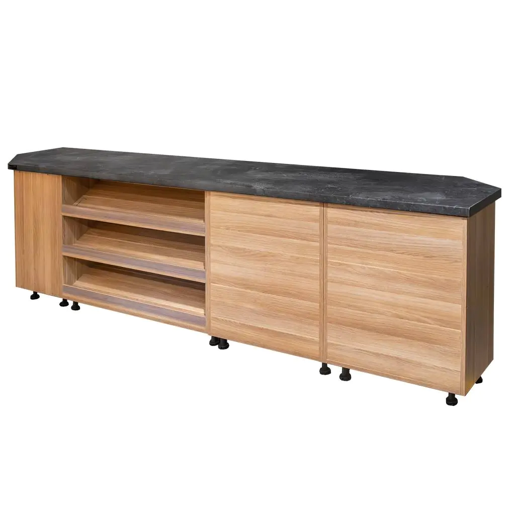 Ladę sprzedażową można łączyć z naszymi innymi meblami tworząc dowolne konfiguracje oraz zestawy. Możliwość łączenia w ciągi pozwala dowolnie wyposażyć przestrzeń sklepową, piekarnię czy stację benzynową. Wykonujemy meble w różnych wymiarach i kolorach. Wzornik kolorów płyty meblowej.