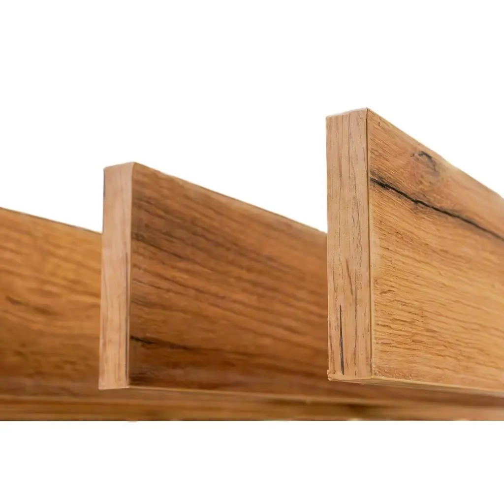 Lamel sufitowy/ścienny podwieszany modułowy Mega-M w kolorze dąb kraft to nowoczesne rozwiązanie, które łączy funkcjonalność z eleganckim designem. Wymiary H-250 cm L-96 cm G-10 cm pozwalają na wszechstronne zastosowanie. Moduł wykonany z wysokiej jakości materiałów, doskonale sprawdzi się zarówno do montażu na ścianie, jak i na suficie tworząc efektywne nowoczesne aranżacje przestrzeni. Lamel wyróżnia się naturalnym wykończeniem w odcieniu dąb kraft, dzięki czemu dodaje wnętrzom ciepła i charakteru.