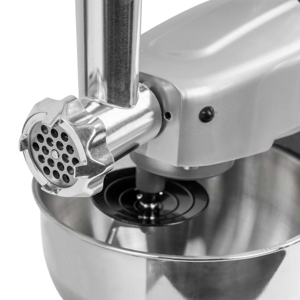 Mikser planetarny 8L Mega-M MX.H08.800 to profesjonalny robot kuchenny 3w1, który został zaprojektowany z myślą o najbardziej wymagających użytkownikach. Doskonale sprawdzi się w gastronomii, a także w domowych kuchniach, gdzie liczy się wygoda, oszczędność miejsca i niezawodność. To nowoczesne urządzenie łączy funkcję miksera planetarnego, maszynki do mielenia mięsa oraz blendera kielichowego, dzięki czemu zastępuje kilka sprzętów i pozwala na przygotowanie pełnego menu w jednym miejscu. Robot wyposażono w pojemną dzieżę ze stali nierdzewnej o pojemności 8 litrów, wytrzymałą obudowę oraz silnik o mocy 1500 W, co gwarantuje bezproblemową pracę zarówno z lekkimi kremami, jak i ciężkim ciastem oraz mięsem. Dzięki 6-stopniowej regulacji prędkości i funkcji Pulse, użytkownik zyskuje pełną kontrolę nad procesem mieszania i może idealnie dopasować tempo pracy do rodzaju przygotowywanego dania.