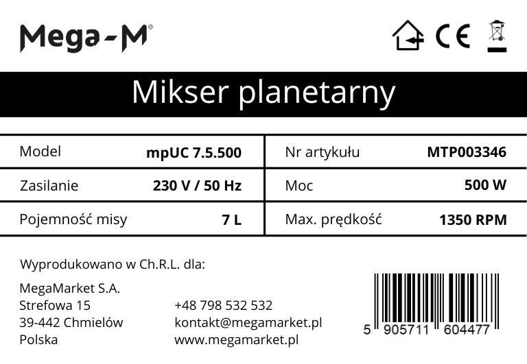 Mikser planetarny 7L Mega-M mpUC 7.5.500 – idealny do gastronomii i użytku domowego