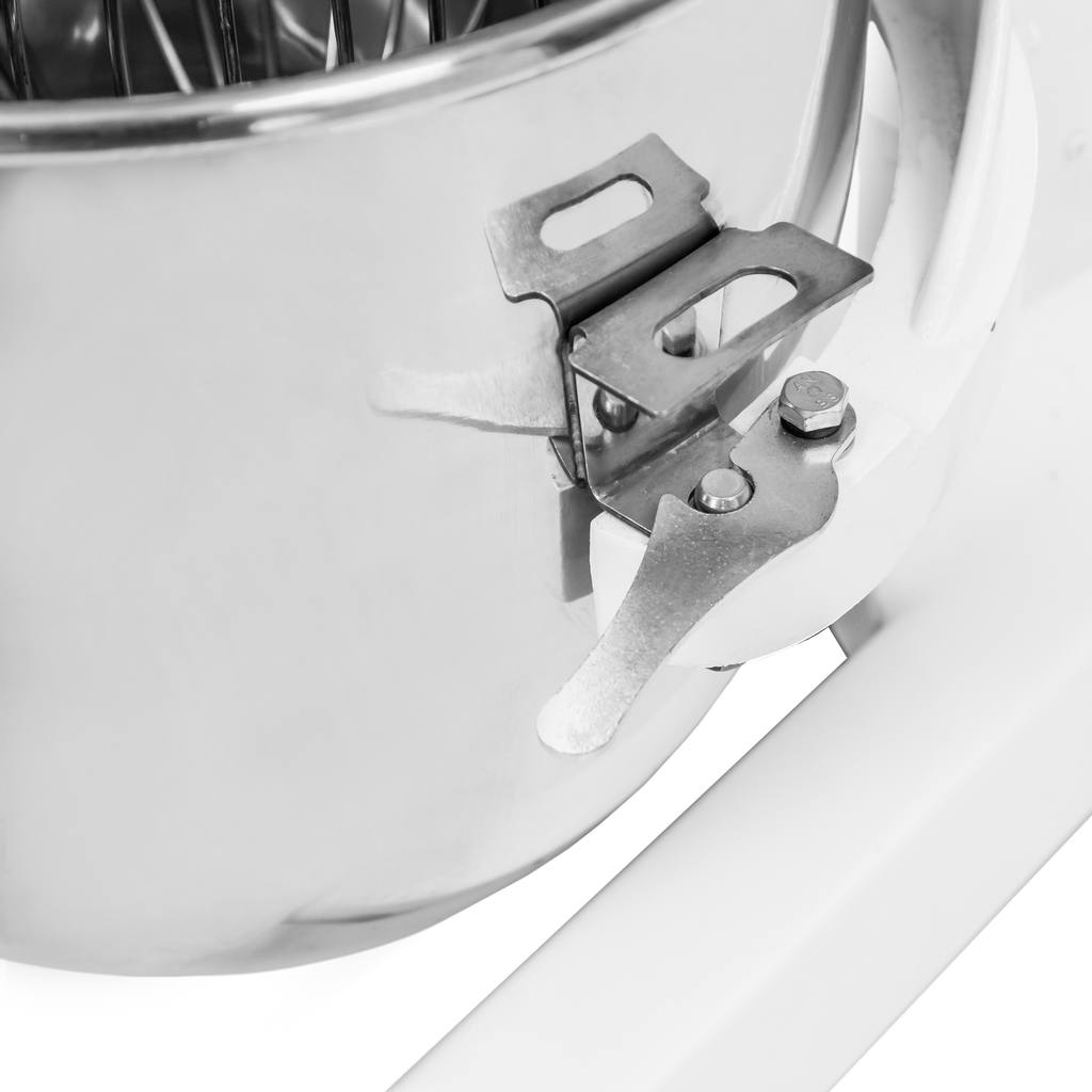 Urządzenie zostało wyposażone w hak, trzepaczkę oraz ubijaczkę ze stali nierdzewnej, co zapewnia wszechstronność użytkowania i wysoką jakość przygotowywanych składników. Zabezpieczenie przed przeciążeniem, awaryjne zatrzymanie, osłona zabezpieczająca i antypoślizgowe nóżki zwiększają bezpieczeństwo pracy, a timer umożliwia precyzyjną kontrolę nad czasem mieszania. Dzięki mocy silnika 1500W oraz solidnej przekładni mikser charakteryzuje się wysoką wydajnością i trwałością. Urządzenie spełnia standardy IPX1 co oznacza podstawową ochronę przed wilgocią.