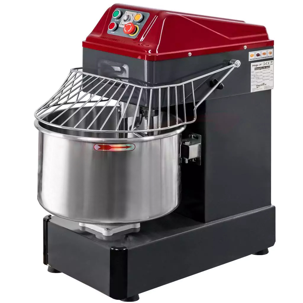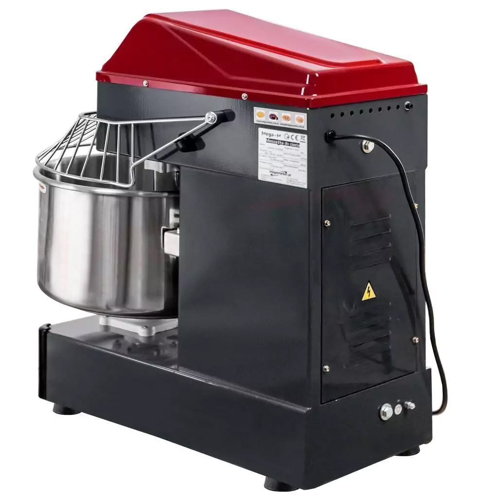 Profesjonalna mieszarka firmy Mega-M to urządzenie do przygotowania wielu rodzajów ciast: na pierogi, pizzę, chleb czy ciasta drożdżowego. Wyposażona jest w pojemną dzieżę ze stali nierdzewnej, która pozwoli na jednorazowe przygotowanie do 16 kg ciasta. Mieszadło o spiralnym kształcie z łatwością wymiesza składniki uzyskując idealne ciasto. Wbudowany timer daje możliwość ustawienie czasu pracy z wybraną prędkością.