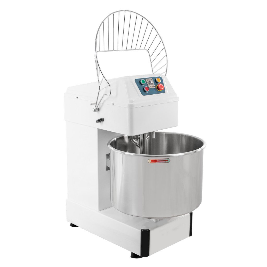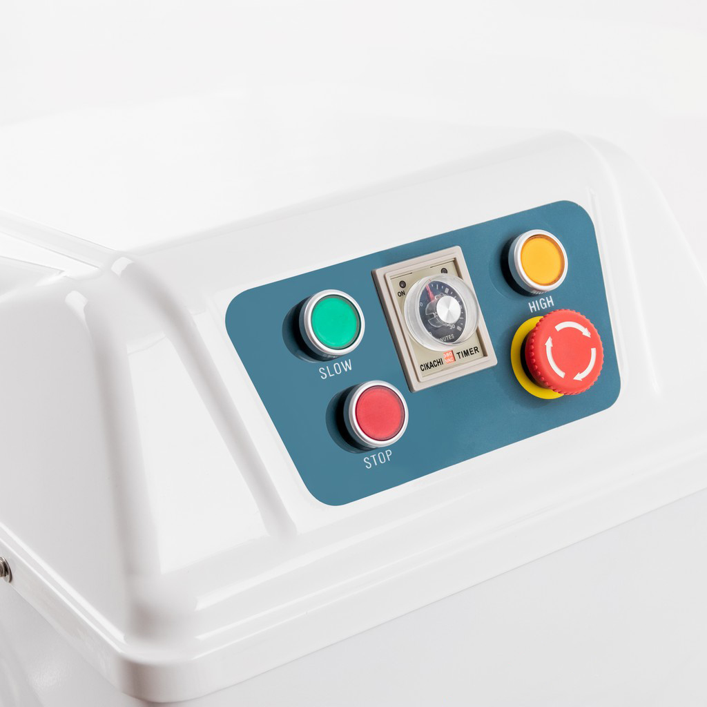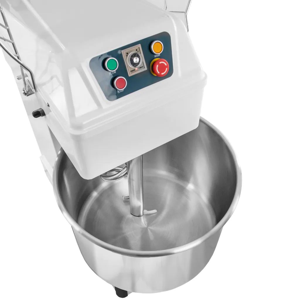 Mieszarka do ciasta firmy Mega-M to profesjonalne urządzenie do przygotowania różnego rodzaju ciasta: drożdżowego, na pierogi, pizzę czy chleb. Mieszałka wyposażona jest w pojemną dzieżę ze stali nierdzewnej, która pomieści jednorazowo do 25 kg ciasta. Mieszadło o spiralnym kształcie z łatwością wymiesza składniki uzyskując idealne ciasto. Urządzenie posiada dwie prędkości pracy Slow- idealna aby rozpocząć mieszanie składników, High- umożliwia prace na szybkich obrotach. Wbudowany timer daje możliwość ustawienie czasu pracy z wybraną prędkością.
