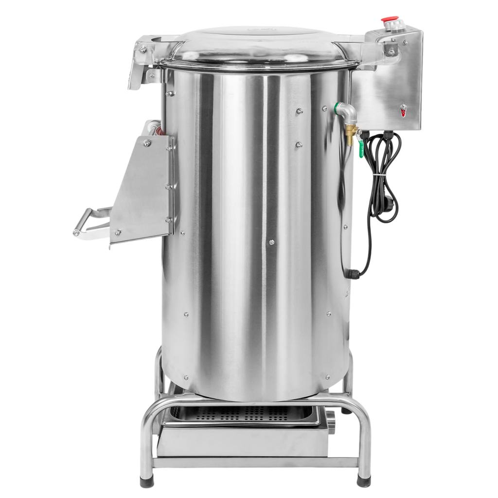Solidna konstrukcja obieraczki gwarantuje niezawodność i trwałość urządzenia nawet przy intensywnej eksploatacji. Urządzenie zasilane prądem jednofazowym (230V).