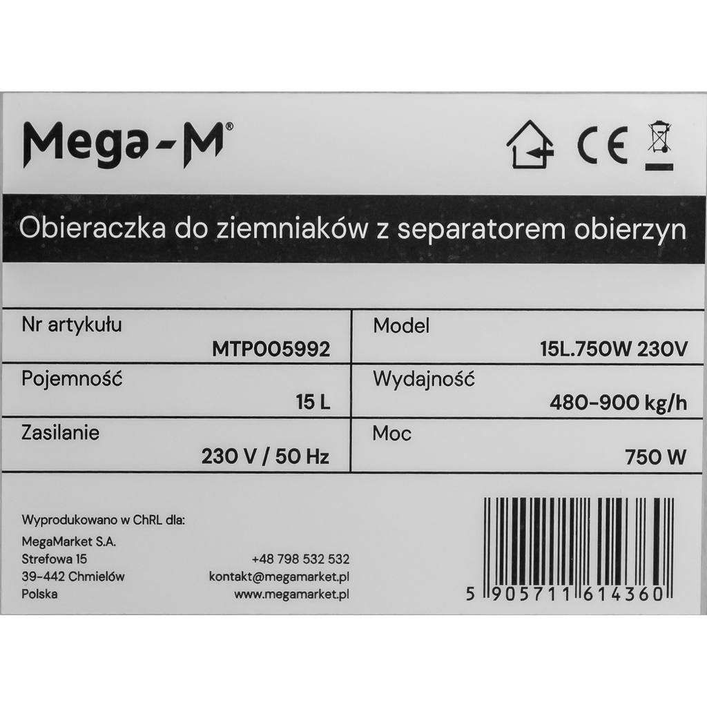 Obieraczka do ziemniaków z separatorem obierzyn Mega-M 15L 0.75 kW – niezwykła funkcjonalność