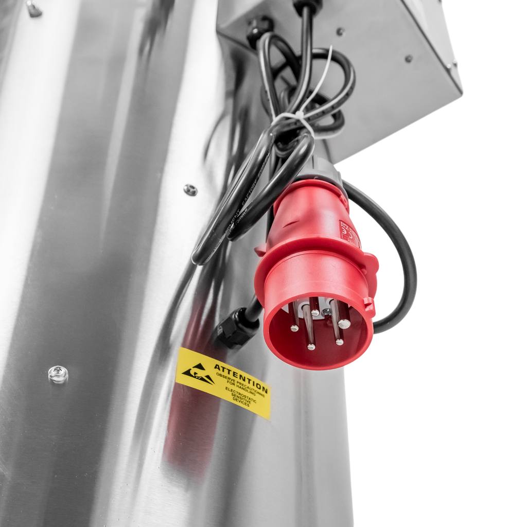 Solidna konstrukcja obieraczki gwarantuje niezawodność i trwałość urządzenia nawet przy intensywnej eksploatacji. Urządzenie zasilane prądem trójfazowym (400V).