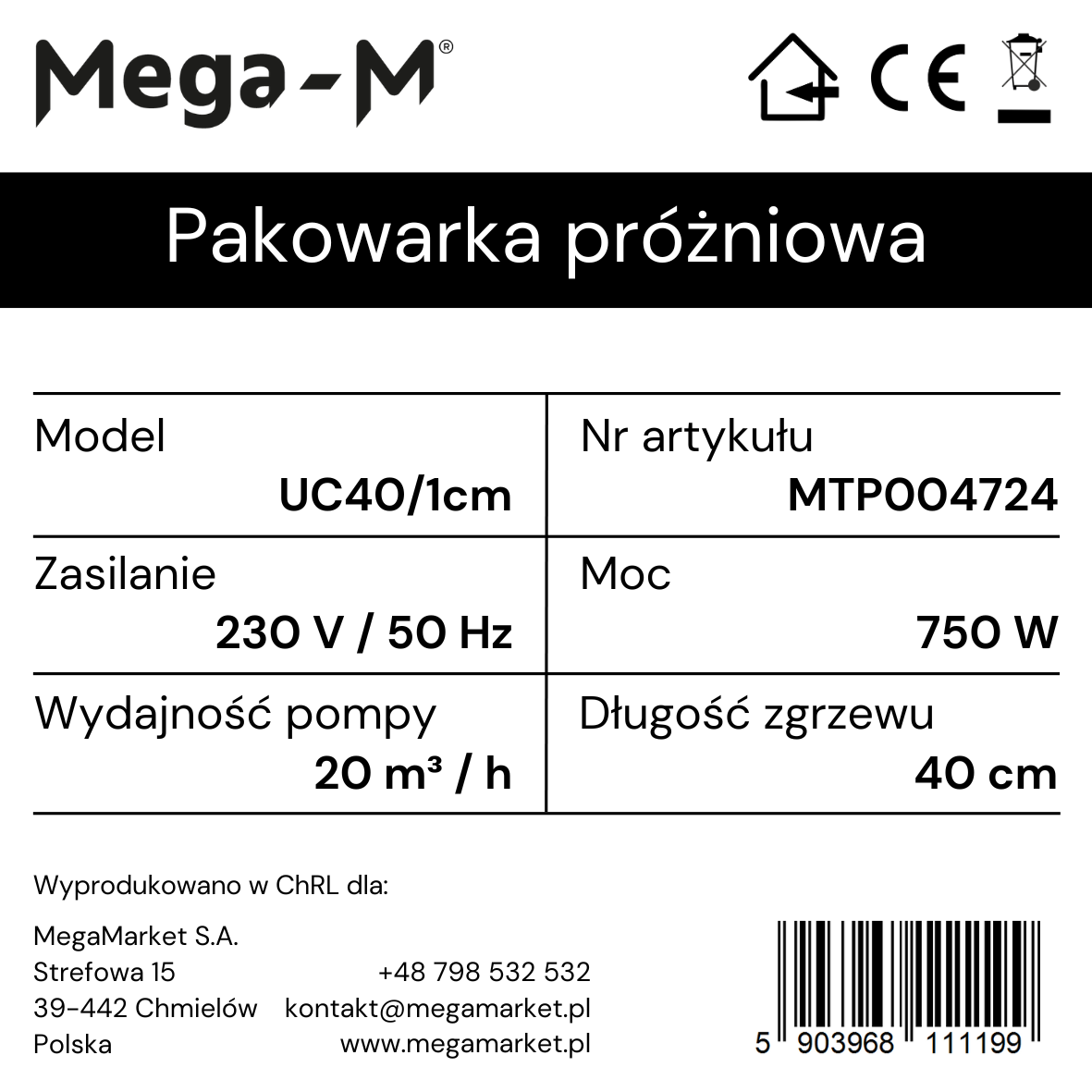 Pakowarka próżniowa z listwa zgrzewającą Mega-M UC40/1cm 750W N