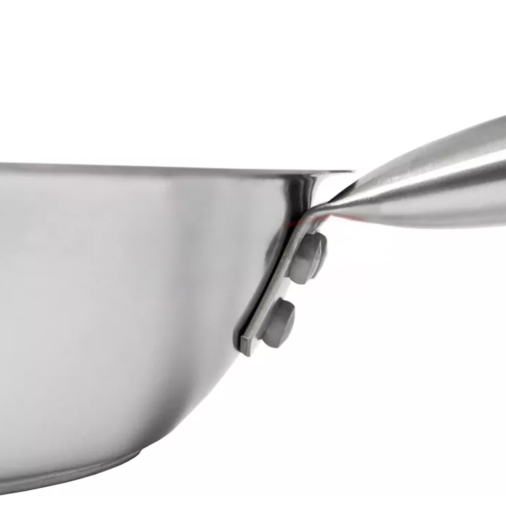 Patelnia nieprzywierająca wykonana ze stali nierdzewnej o średnicy 30 cm i wielowarstwowym dnie typu sandwich (stal nierdzewna-aluminium-stal nierdzewna) o grubości 6 mm. Patelnia posiada ergonomiczny uchwyt o wysokiej wytrzymałości termicznej, wykonany z materiału minimalizującego ryzyko poparzenia w trakcie smażenia potraw. Patelnia może być użytkowana na wszystkich typach kuchni: elektrycznej, gazowej, ceramicznej oraz indukcyjnej. Doskonale nadaje się do smażenia wszelkiego rodzaju potraw. Sprawdzi się w każdego rodzaju kuchni lokalu gastronomicznego, restauracji, placówce oświatowej czy socjalnej.