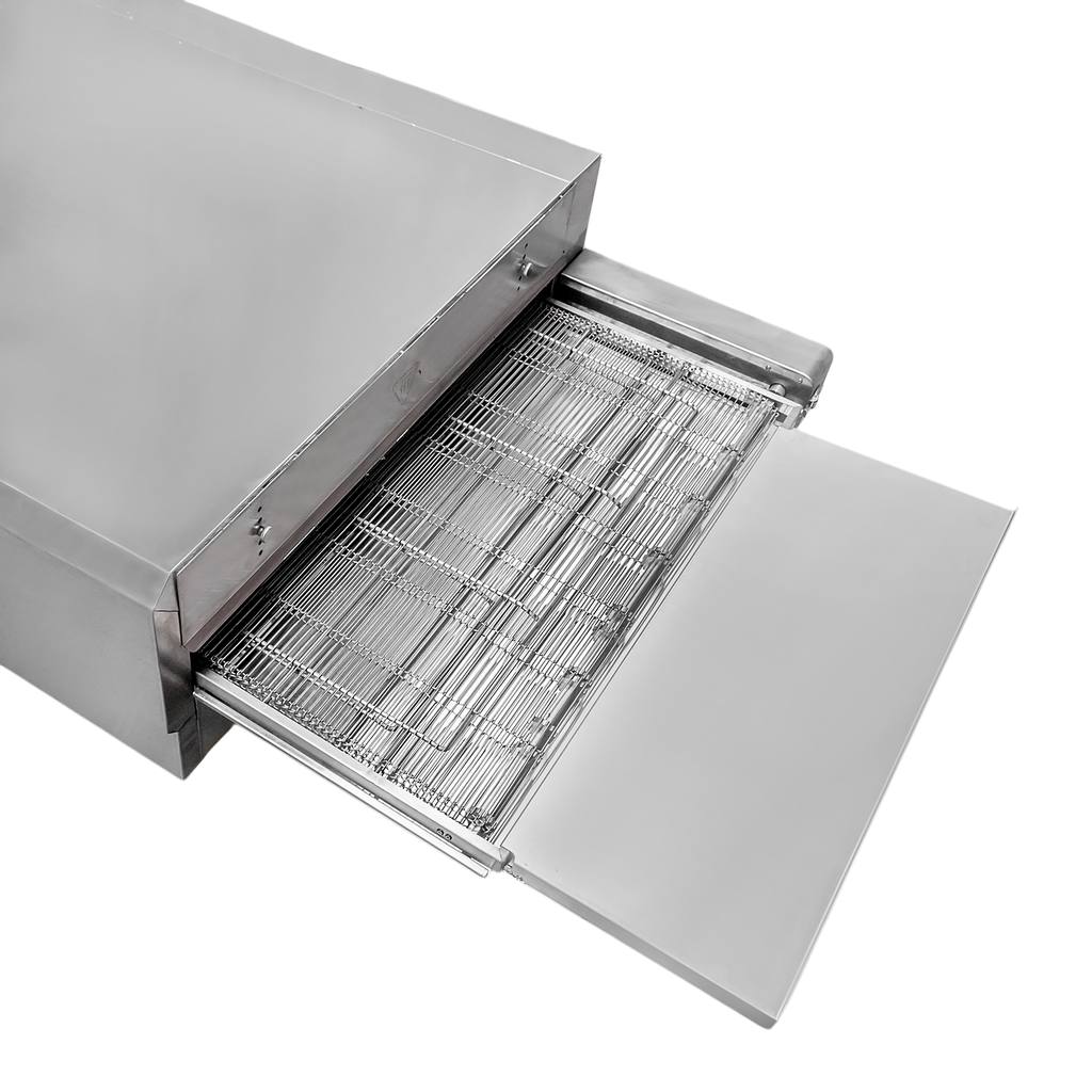 Piec do pizzy przelotowy Mega-M to profesjonalne urządzenie do wypieku pizzy, wyrobów cukierniczych i gastronomicznych. Jednokomorowy piec wyposażony jest w przesuwną taśmę z regulacją prędkości. Dzięki czemu potrawy są idealnie wypieczone i chrupiące. Piec taśmowy wykonane jest z wysokiej jakości stali nierdzewnej, co zapewnia wysokie właściwości higieniczne. Profesjonalny piec przelotowy to urządzenie proste w obsłudze, które gwarantuje wysoką wydajność i energooszczędność.