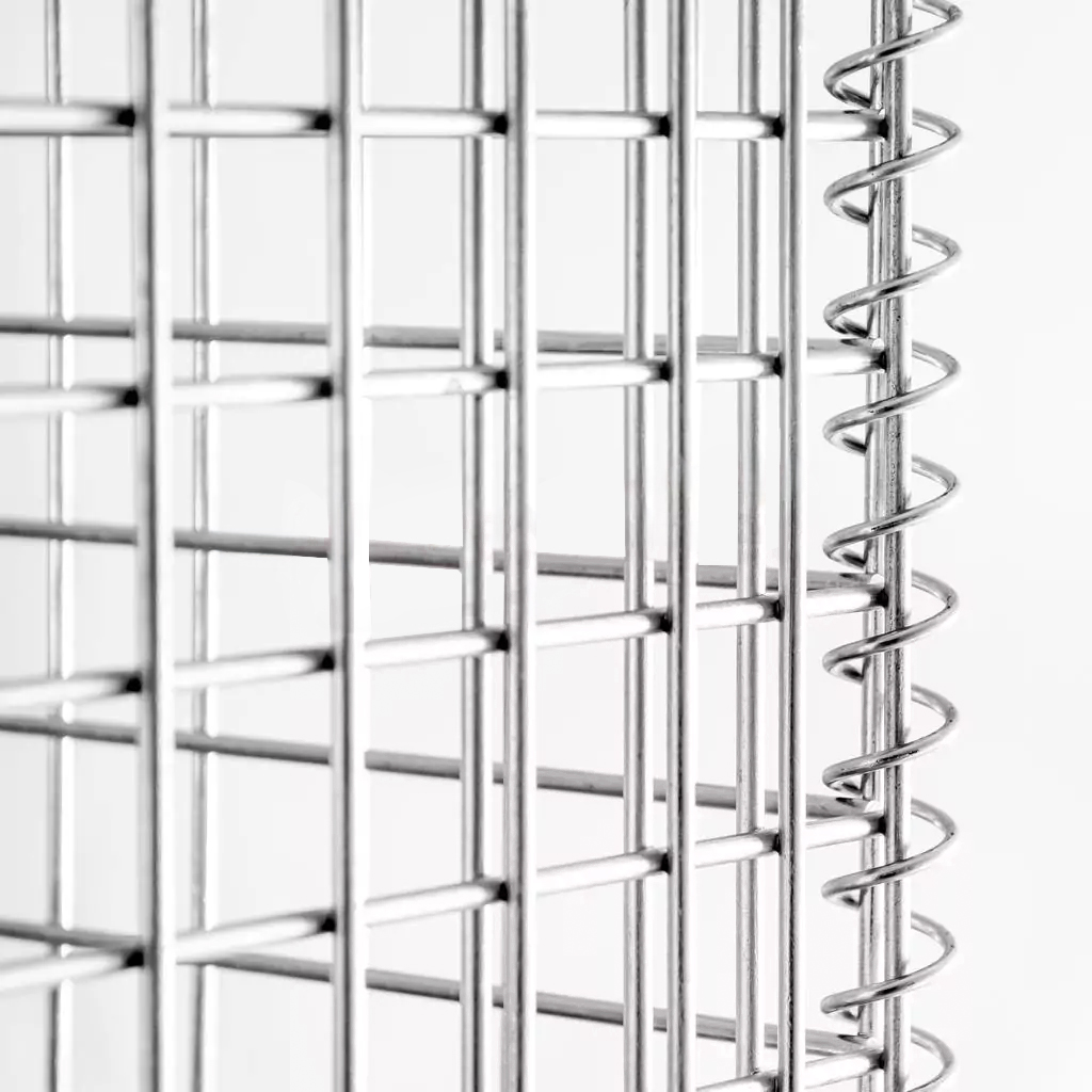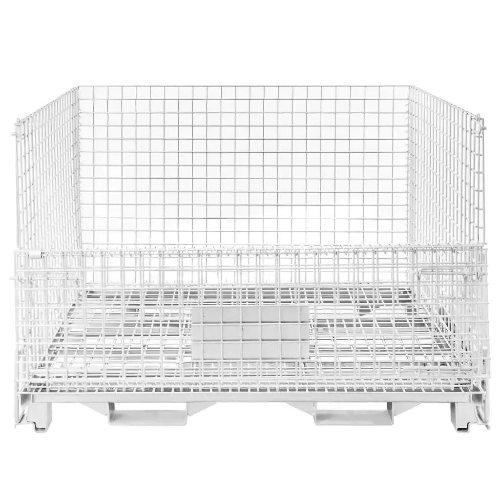 Gitterbox składany, to doskonały element wyposażenia wszelkiego rodzaju magazynów lub sklepów. Za pomocą pojemników koszowych w szybki sposób możemy zbudować solidny kosz na towary o mniejszych gabarytach. Pojemnik siatkowy na boku o długości 120 cm posiada uchylną klapę, ułatwiającą wkładanie i wyjmowanie towaru. Dzięki odpowiednim łapom zaczepowym można je także układać piętrowo jeden na drugim i wykorzystać całą przestrzeń magazynową. Metalowy kosz jest wytrzymały i odporny na uszkodzenia mechaniczne. Jest wykonany z myślą o użytkowaniu w magazynie zamkniętym oraz na zewnątrz. Odporność na warunki atmosferyczne to kolejna zaleta pojemnika siatkowego.