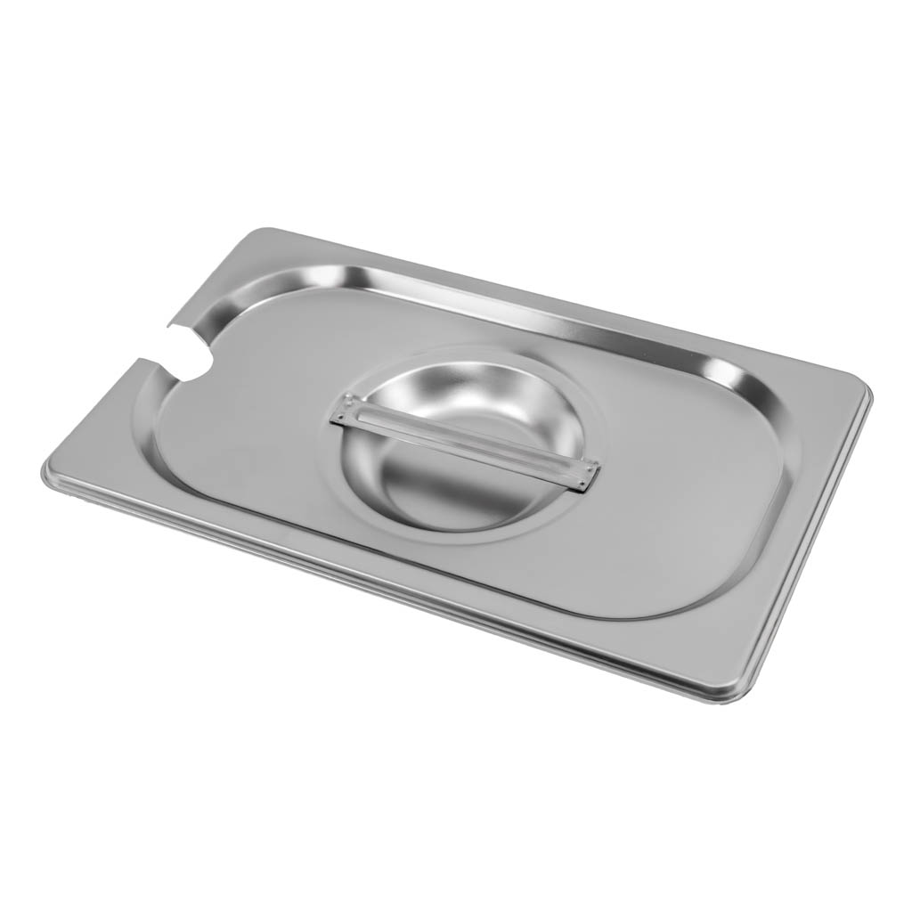 Pokrywka GN to niezbędny element wyposażenia każdej kuchni gastronomicznej, w której używa się pojemników GN. Pokrywka do GN 1/4 ze specjalnym, praktycznym wycięciem na chochlę została wykonana ze stali nierdzewnej najwyższej jakości, dzięki czemu charakteryzuje się wysoką odpornością i trwałością na potencjalnie szkodliwe warunki. Wycięcie umożliwia zamknięcie pojemnika GN bez wyciągania chochli.