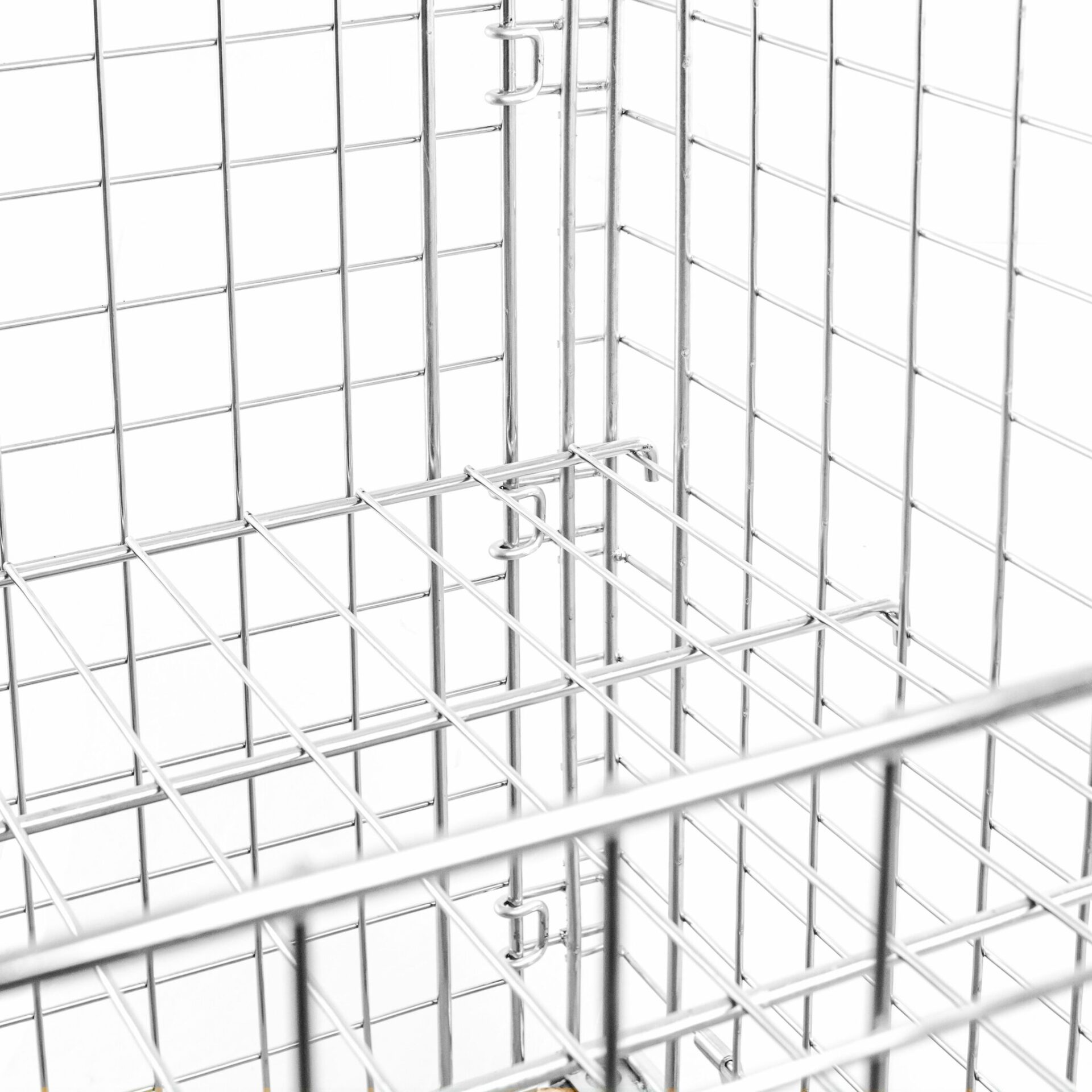 Półka druciana z haczykami Mega-M o szerokości 121 cm i głębokości 75 cm, pełni funkcję wypełnienia przestrzeni gitterboxu, daje możliwość układania, sortowania, towaru na różnych poziomach. Wykonana jest z drutu metalowego o średnicy 0,5 cm pokryty warstwą cynku. Średnica oczka 25×7 cm. Półka posiada nośność 50 kg.
