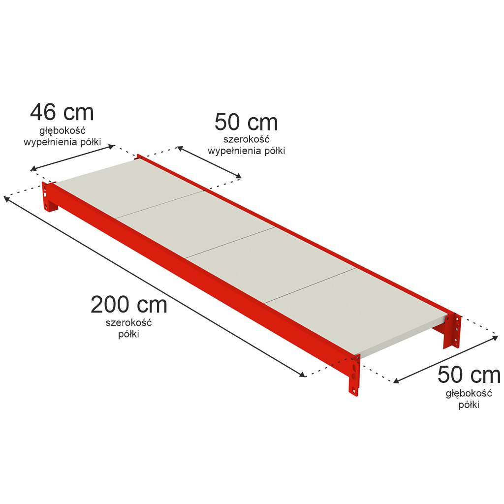 Półka 200×50 cm pasuje do regałów Mega-M FORTIS: