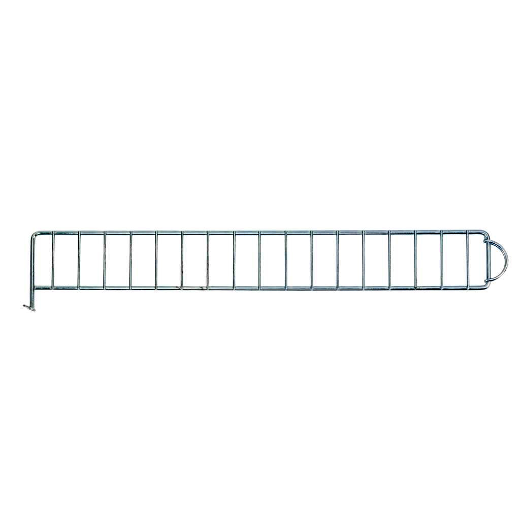 Przegroda boczna Mega-M G-47 cm H-6 cm wykonana jest z drutu stalowego ocynkowanego zapewniającego trwałość i elegancki wygląd. Separator półki chroni umieszczone towary przed wypadnięciem oraz umożliwia podzielenie półki na odrębne sekcje. Do zamontowania przegrody na regale konieczny jest przedni ogranicznik.