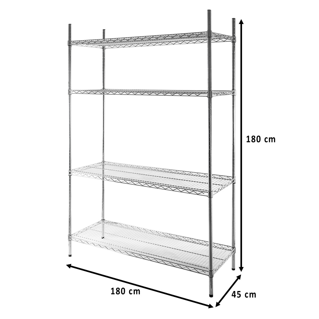 Regał druciany chromowany Mega-M 4-półkowy 180x45x180 cm
