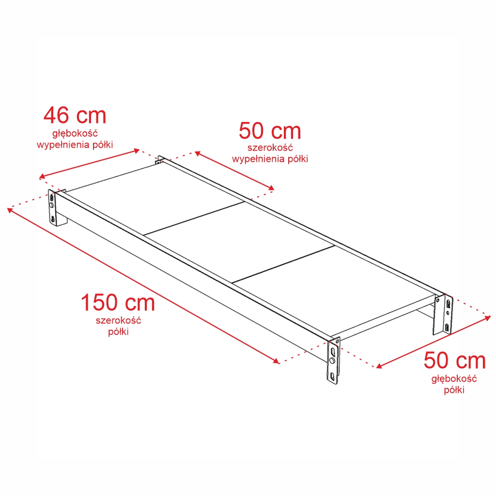 - Wypełnienie metalowe L-50 G-46: 12 szt. (3 szt./półkę).