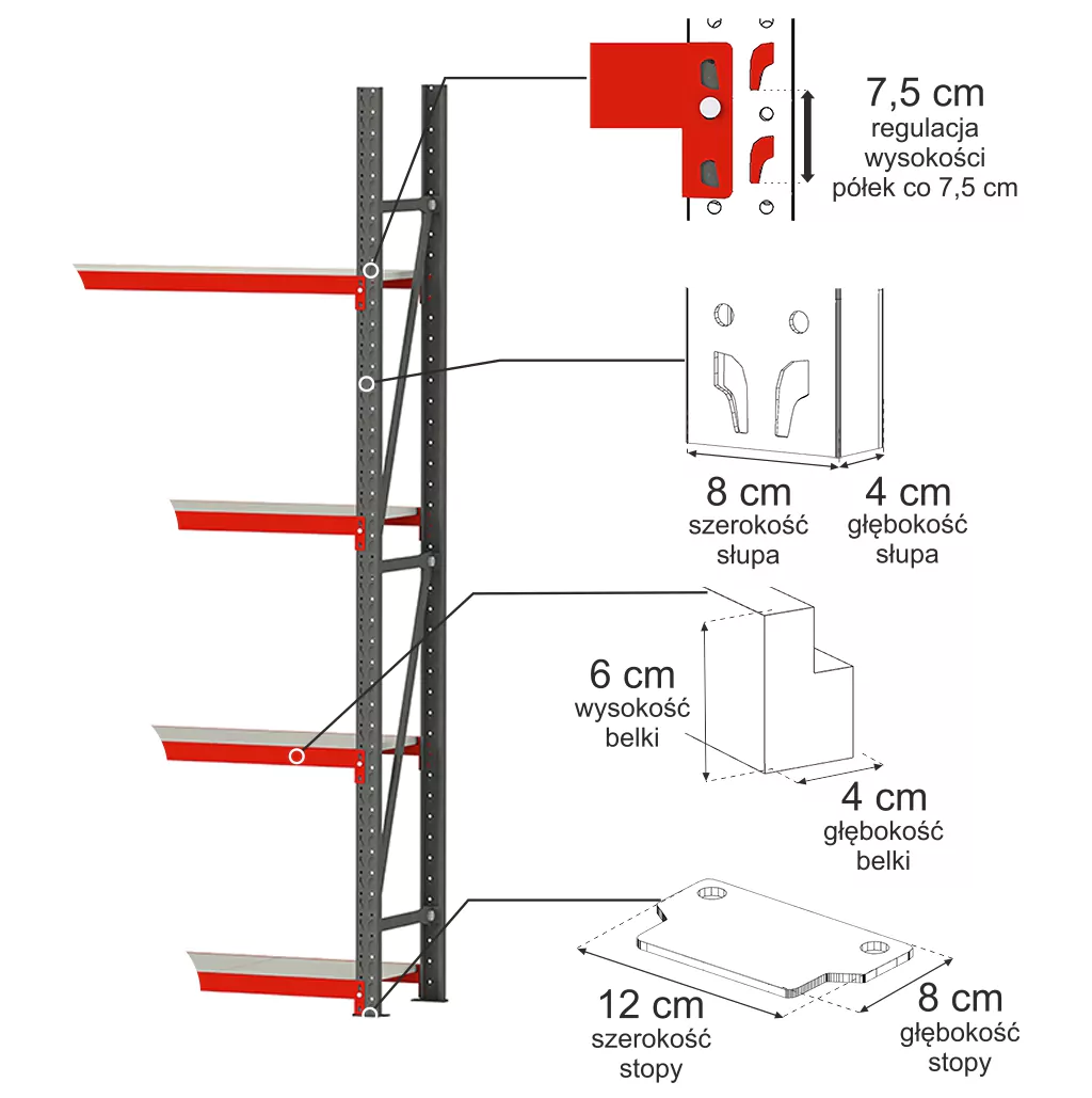 Regał magazynowy Mega-M FORTIS moduł dostawny zawiera: