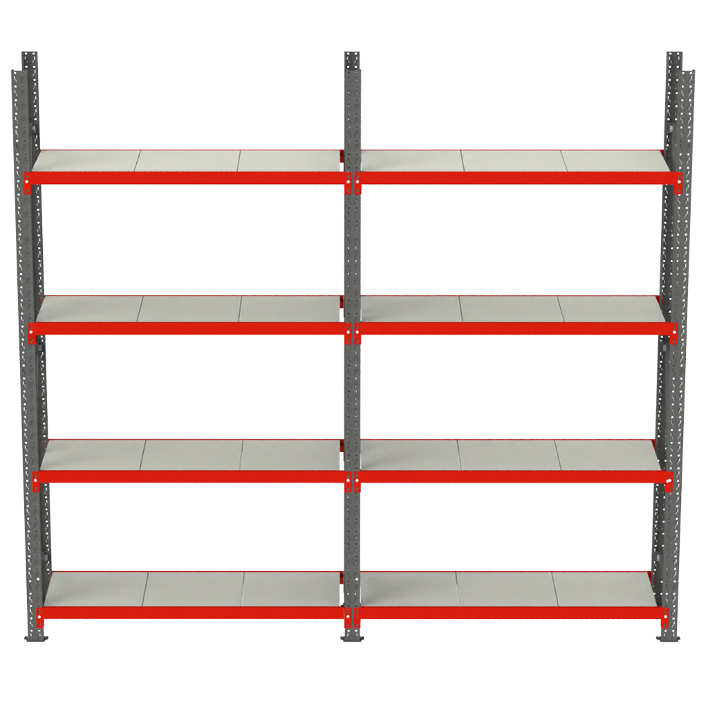 Regał magazynowy 4-półkowy Mega-M FORTIS H-200 cm L-325,50 cm G-40 cm zestaw ( 2 moduły x 150 cm) N