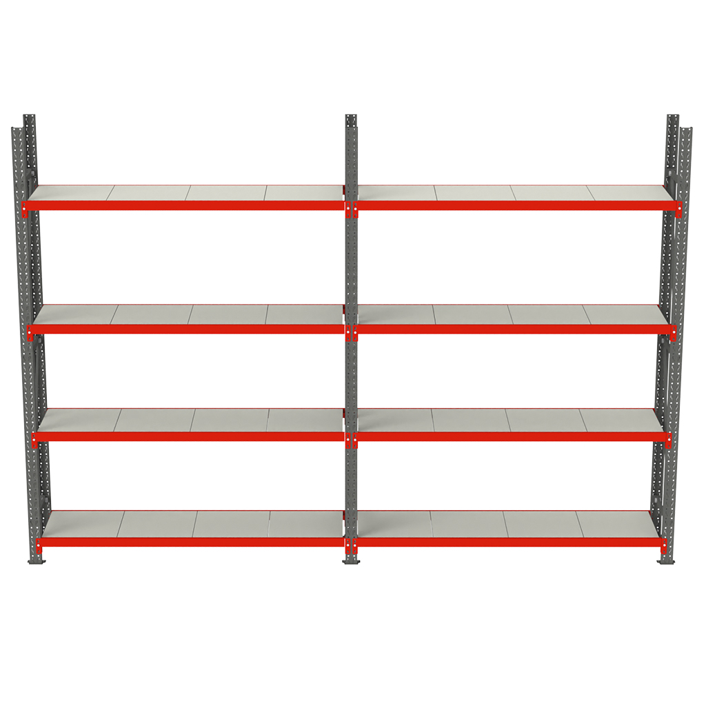 Regał magazynowy 4-półkowy Mega-M FORTIS H-200 cm L-425,50 cm G-50 cm zestaw ( 2 moduły x 200 cm) N