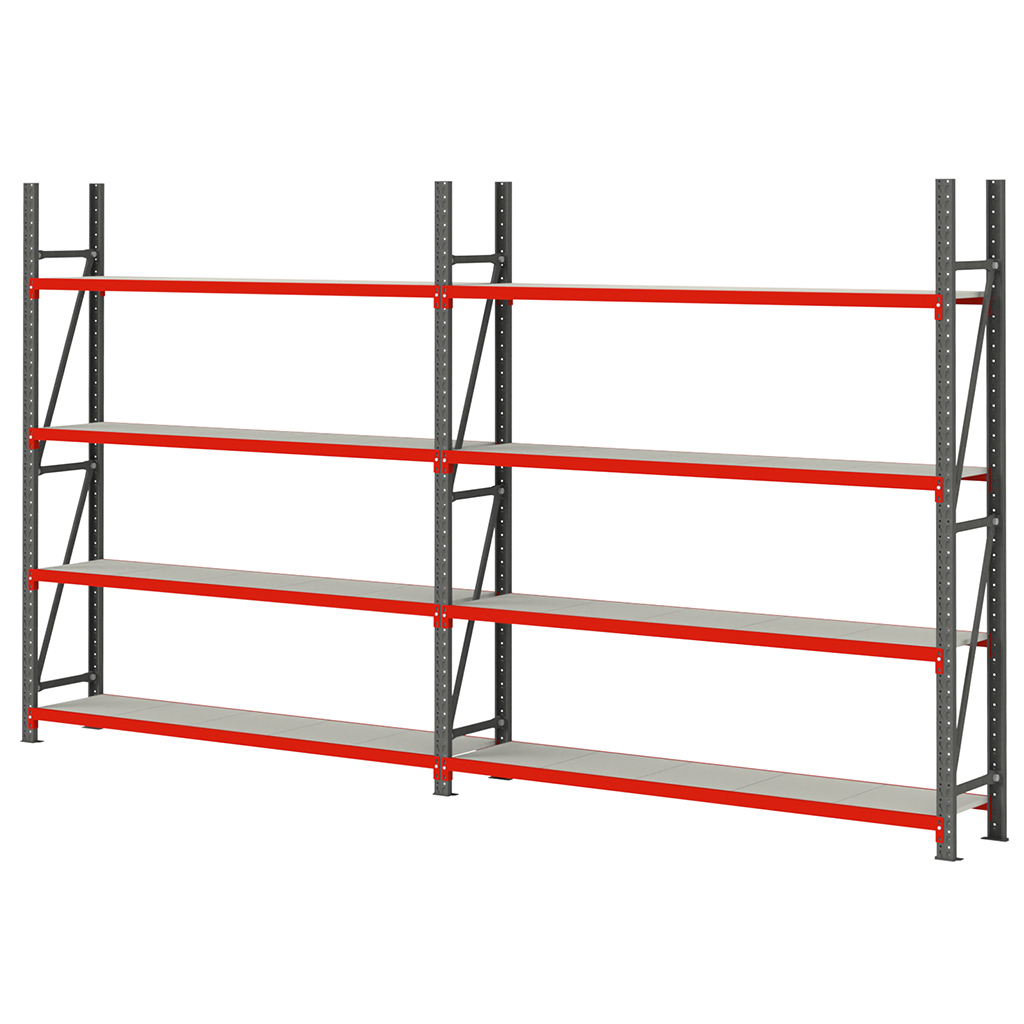 Regał magazynowy 4-półkowy Mega-M FORTIS H-200 cm L-525,50 cm G-60 cm zestaw ( 2 moduły x 250 cm) N