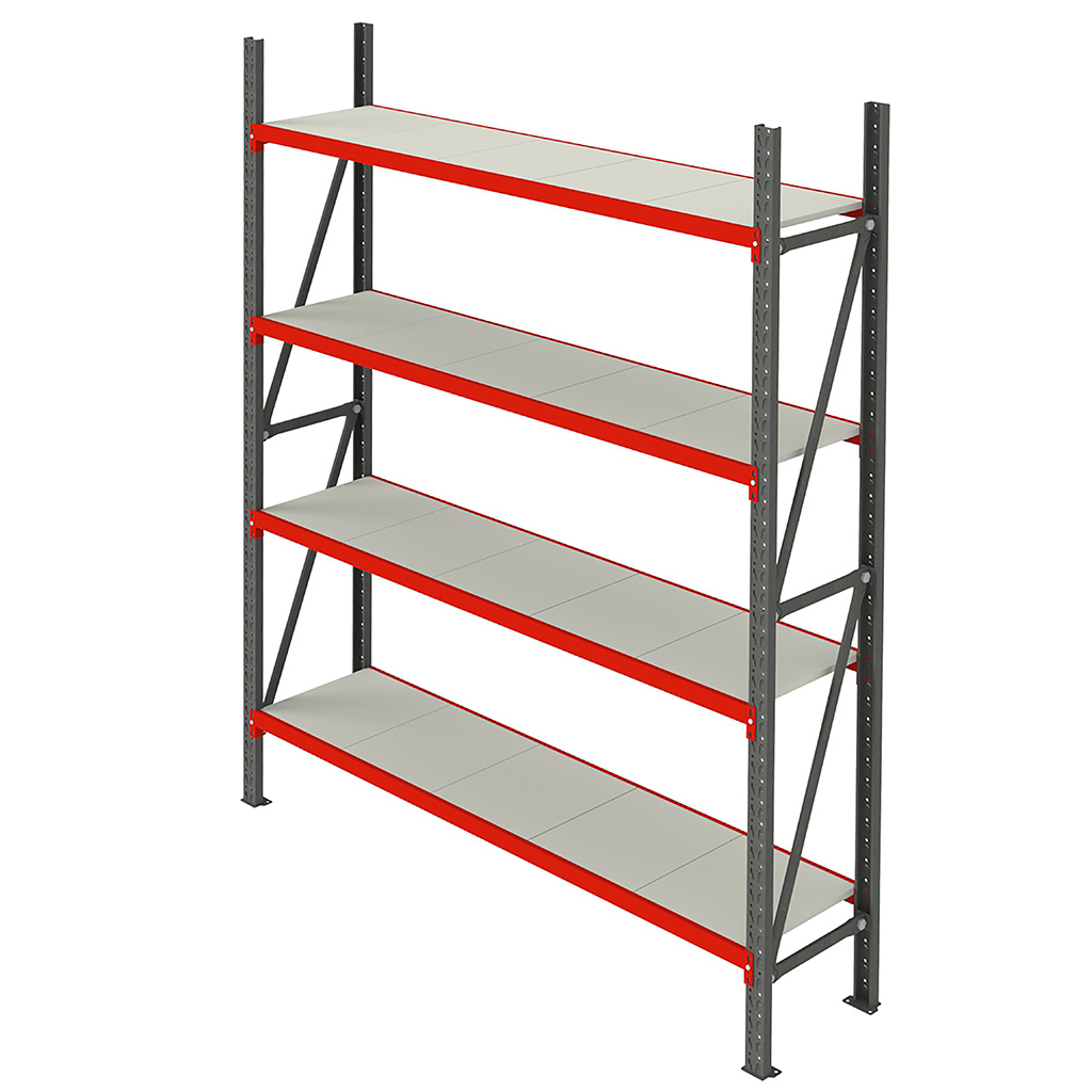 Regał magazynowy 4-półkowy Mega-M FORTIS H-240 cm L-267 cm G-60 cm moduł bazowy N
