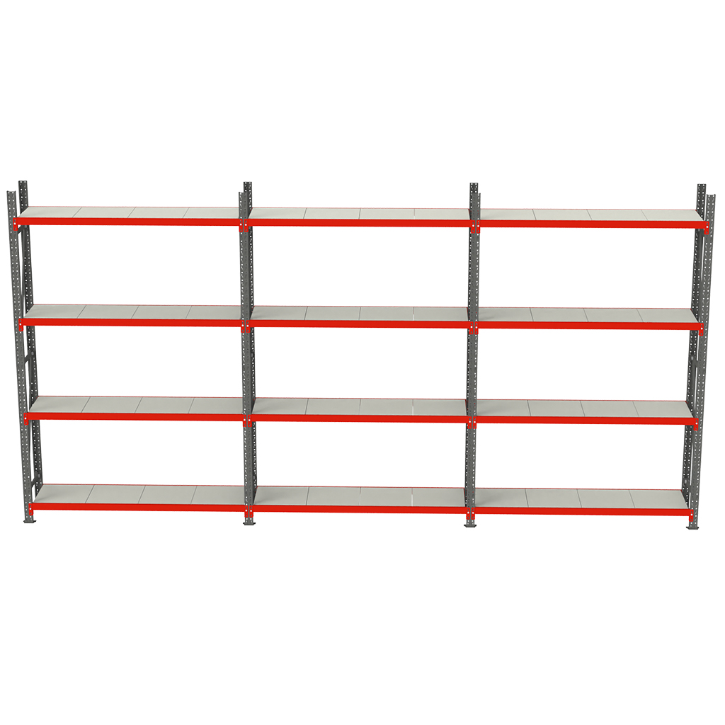 Regał magazynowy 4-półkowy Mega-M FORTIS H-240 cm L-634 cm G-40 cm zestaw ( 3 moduły x 200 cm) N
