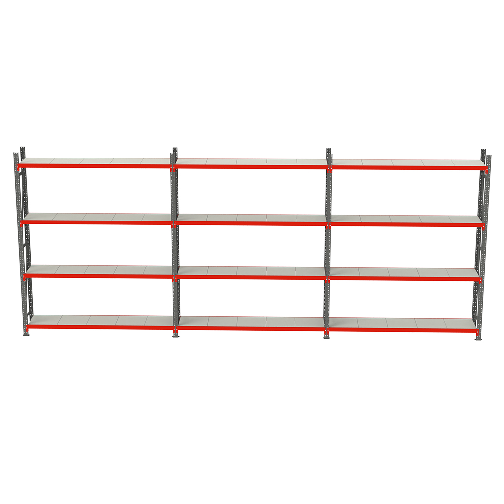 Regał magazynowy 4-półkowy Mega-M FORTIS H-240 cm L-784 cm G-60 cm zestaw ( 3 moduły x 250 cm) N